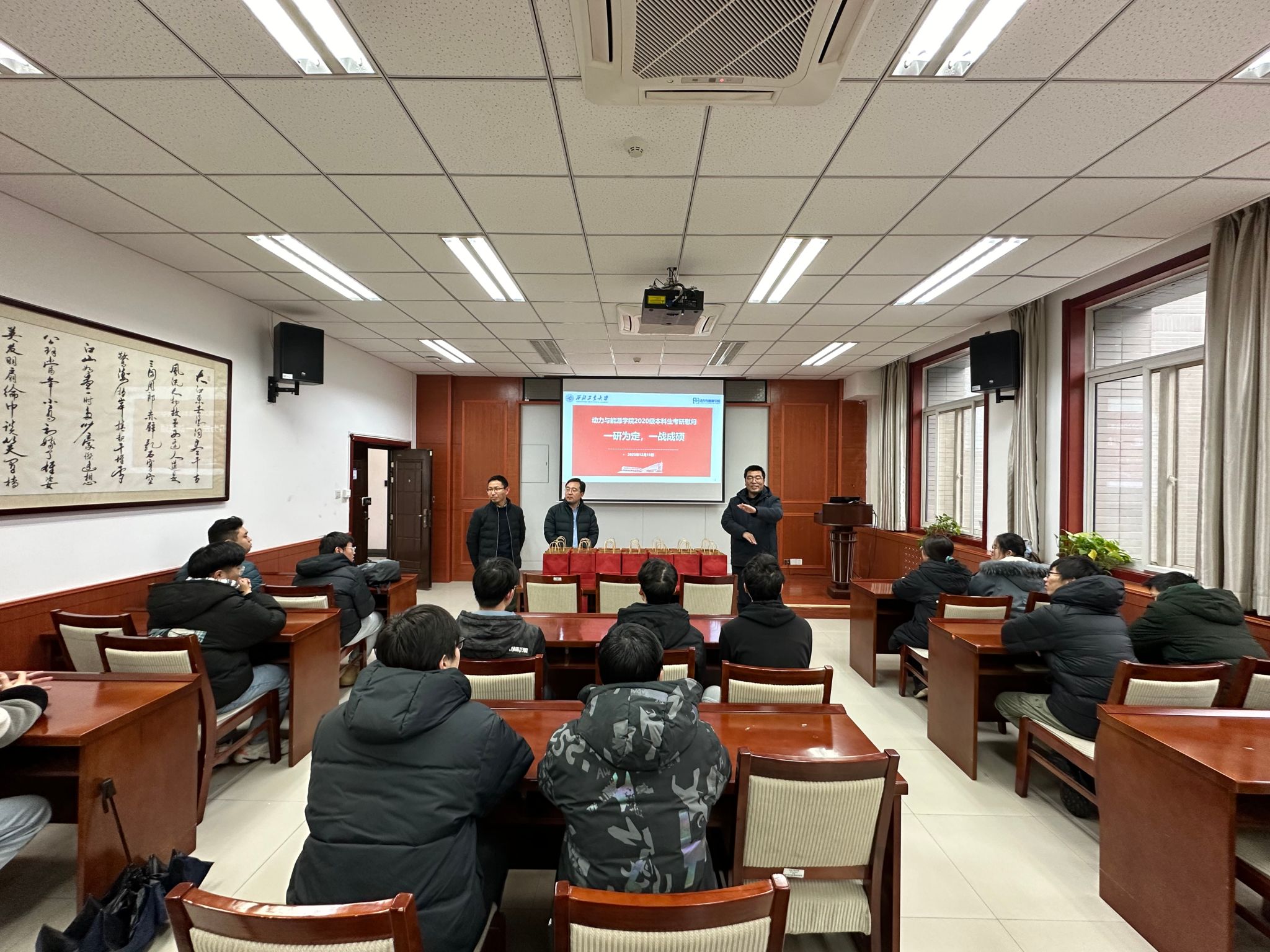 2020级本科生考研慰问活动在学院楼225举行。刘存良副院长、王治武副院长、刘海涌副书记及考研同学代表参加了活动。