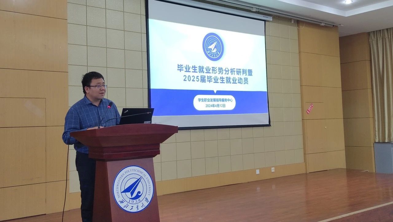 于4月12日下午15:00在报告厅开展了毕业生就业形势分析研判暨2025届毕业生就业动员会,学校党委学生工作部副部长刘伟主讲,学院党委副书记徐永超,研究生辅导员姜倩和2025届全体毕业生参加会议。