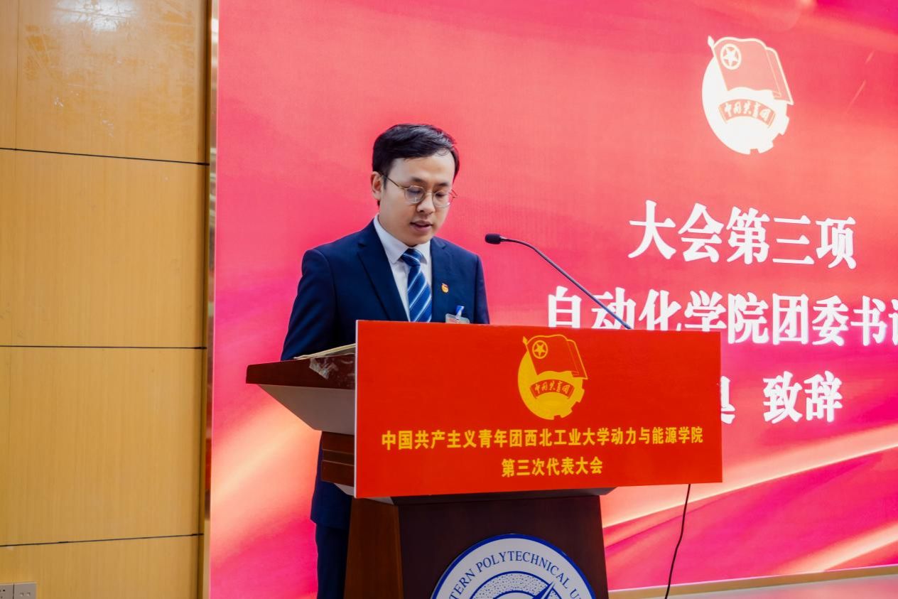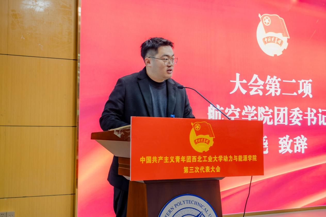 党委副书记徐永超代表学院党委向到场嘉宾、团员代表表示热烈欢迎,并向大会筹备委员会的同学们致以感谢。他在致辞中首先对学校团委给予学院团学工作的大力指导和支持表示感谢,提出广大团员青年要做到加强思想引领、坚定理想信念,铭记时代使命、勇担青春责任,发挥组织优势、服务青年成长,勇于创新实践、助力航空强国。