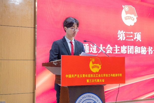 党委副书记徐永超为大会致闭幕词。致辞中,他向本次当选委员表示祝贺,向大会工作人员和全体团员代表送上感谢和祝福,并强调了对学院团学工作的期望和要求。在激昂奋进、朝气蓬勃的团歌声中,大会顺利完成各项议程,圆满落下帷幕。