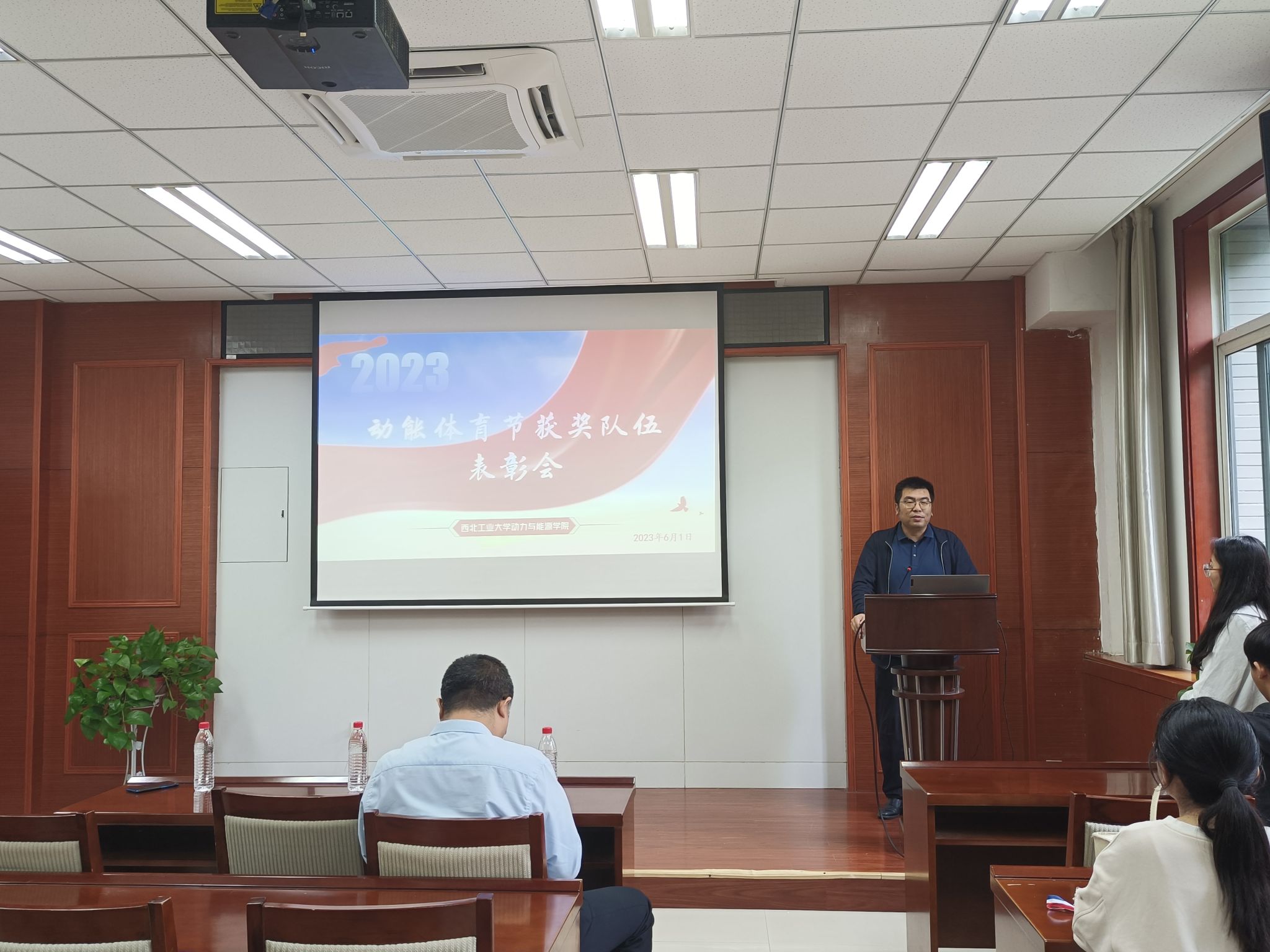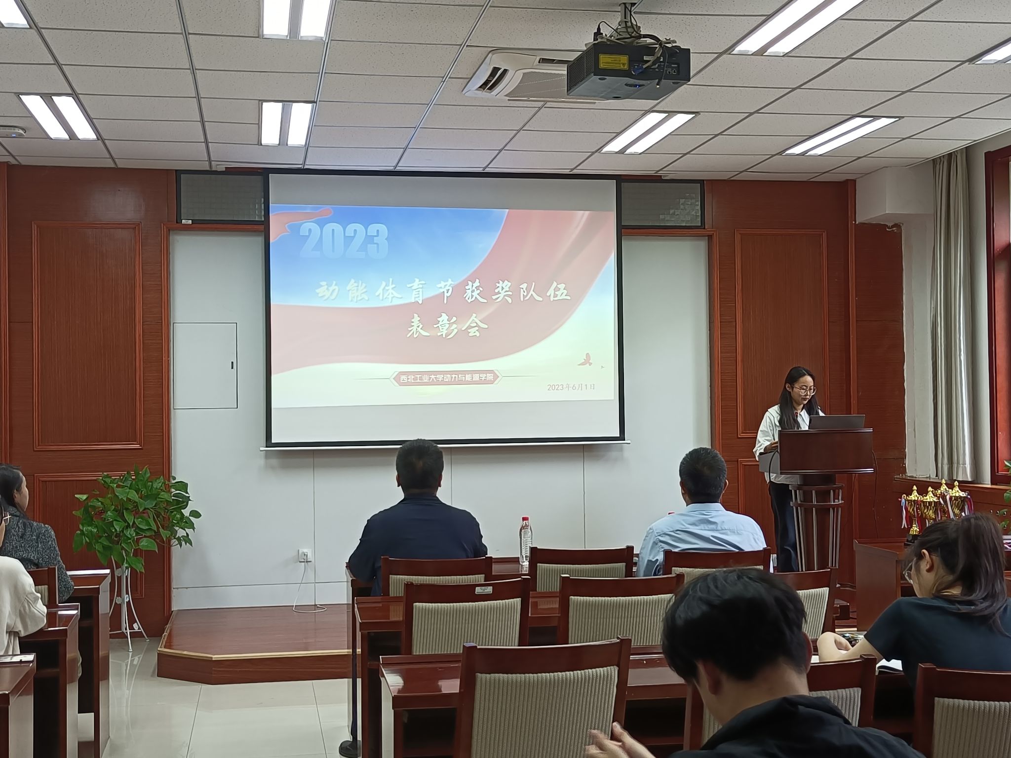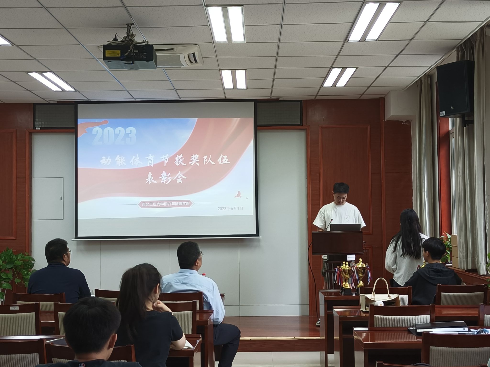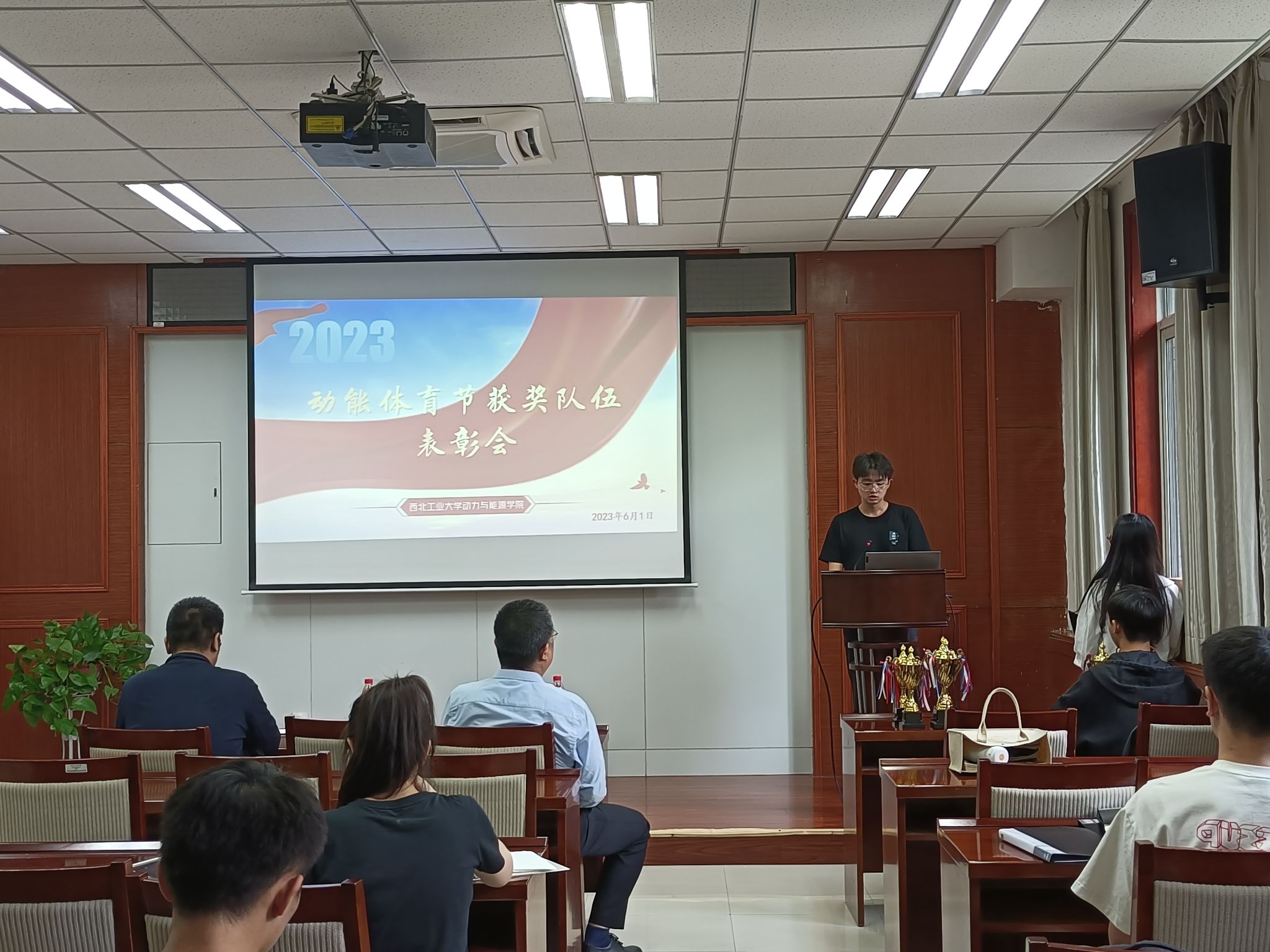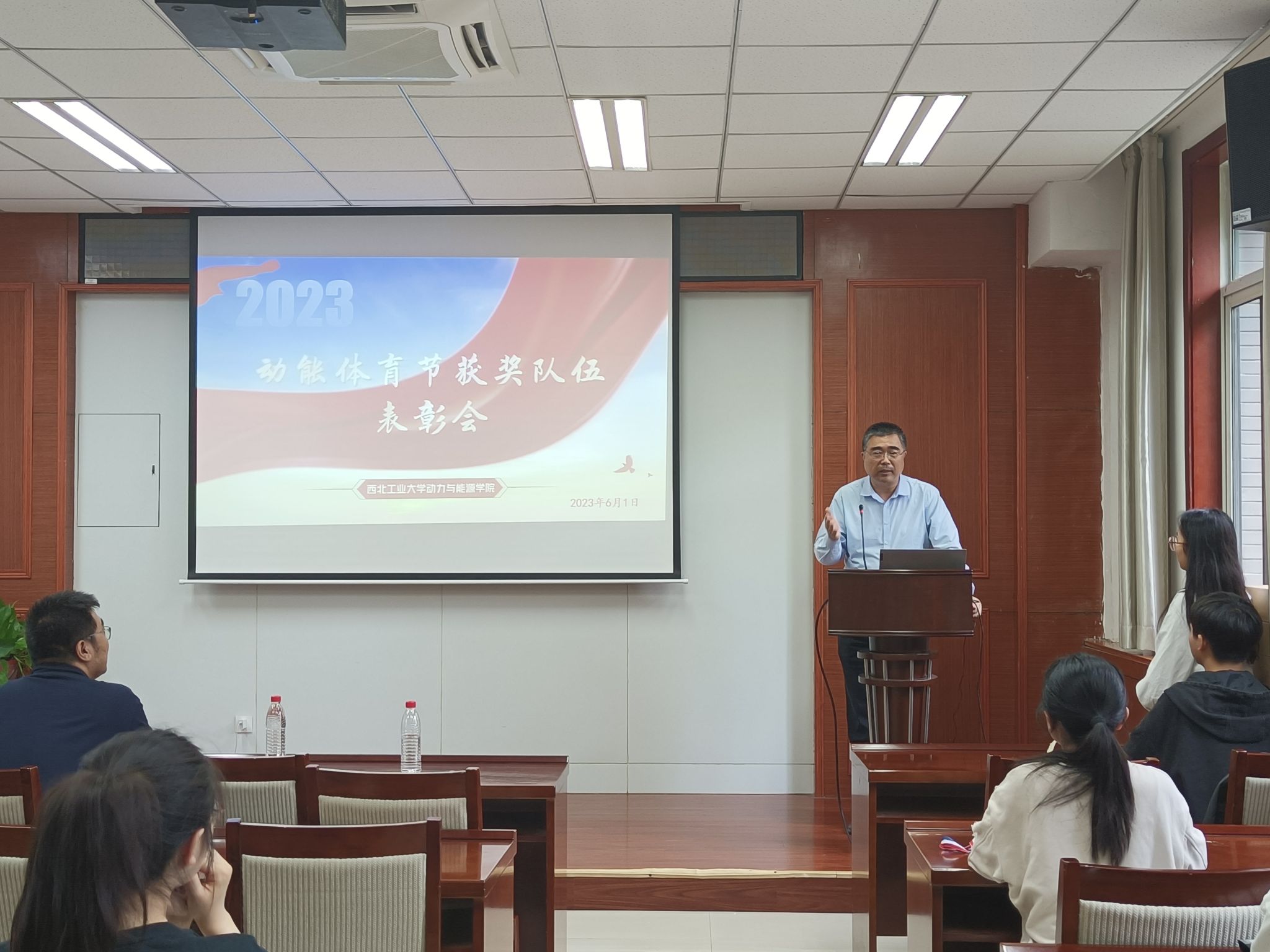 于6月1日下午召开动能体育节表彰大会。学院党委书记闫育周、党委副书记刘海涌、团委书记姜倩出席本次大会,学院学生会成员、动能体育节获奖队伍队员及先进个人参会,学院学生会成员石梦琦主持大会。