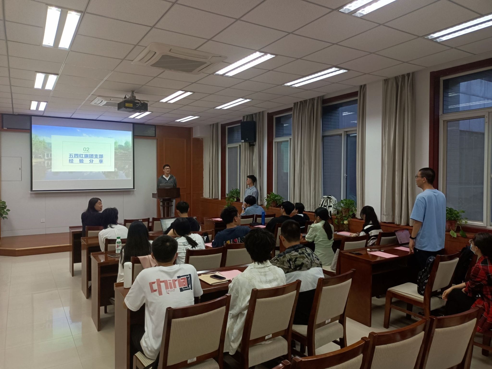 学院楼225会议室开展经验分享会,学院团委书记姜倩老师出席会议,大一、大二年级各班班长及团支书全部参会,学习优秀经验。