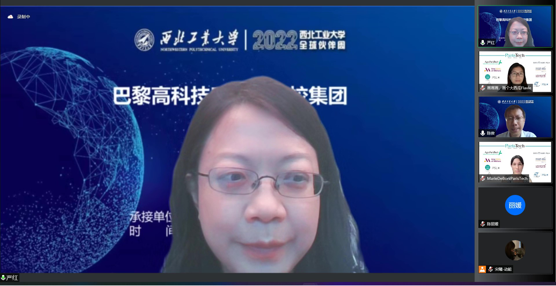 以西北工业全球伙伴周活动为契机,于线上召开巴黎高科技工程师学校集团(简称巴黎高科)交流座谈会。巴黎高科驻华代表Marie de BONI受邀参加座谈会。我校国际合作处副处长陈俊、a动漫