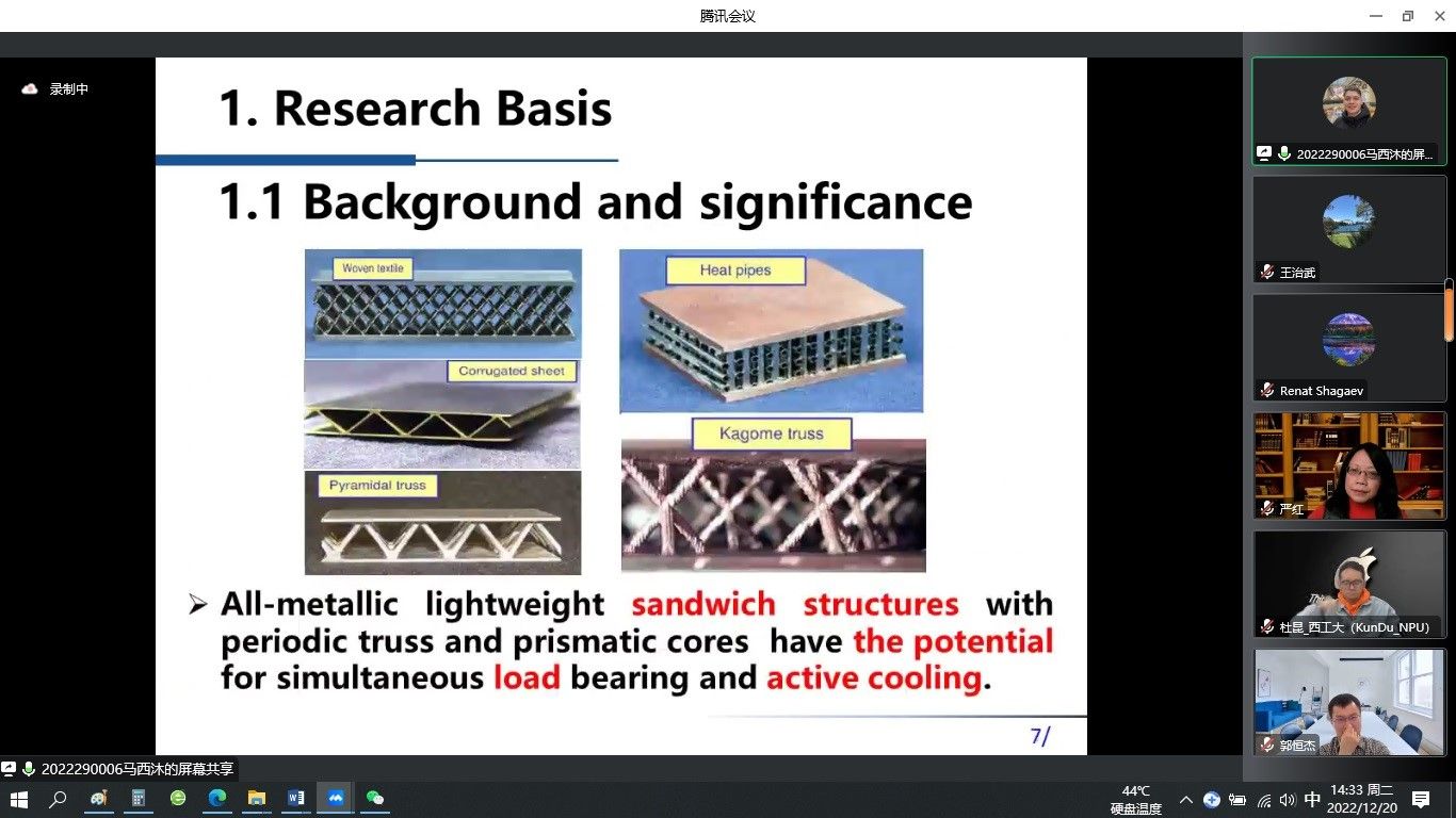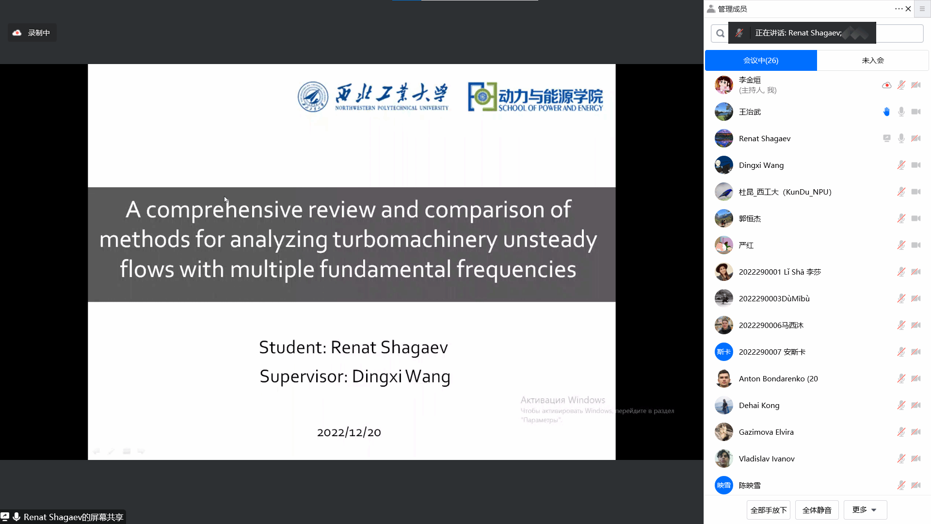 院长王占学、副院长王治武、刘存良及答辩专家,全体联培留学研究生和指导教师参加会议。会议由王治武副院长主持。