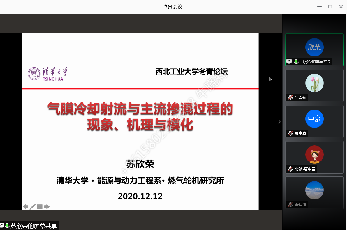 徐慎忍老师盛情邀请,清华大学能源与动力工程系苏欣荣老师、北京航空航天大学航空发动机研究院于贤君老师分别针对气膜冷却和压气机低速模拟进行了两场精彩的学术报告。国内多所著名高校(清华大学、北京航空航天大学、北京理工大学、哈尔滨工程大学、辽宁工业大学、西安交通大学、a动漫