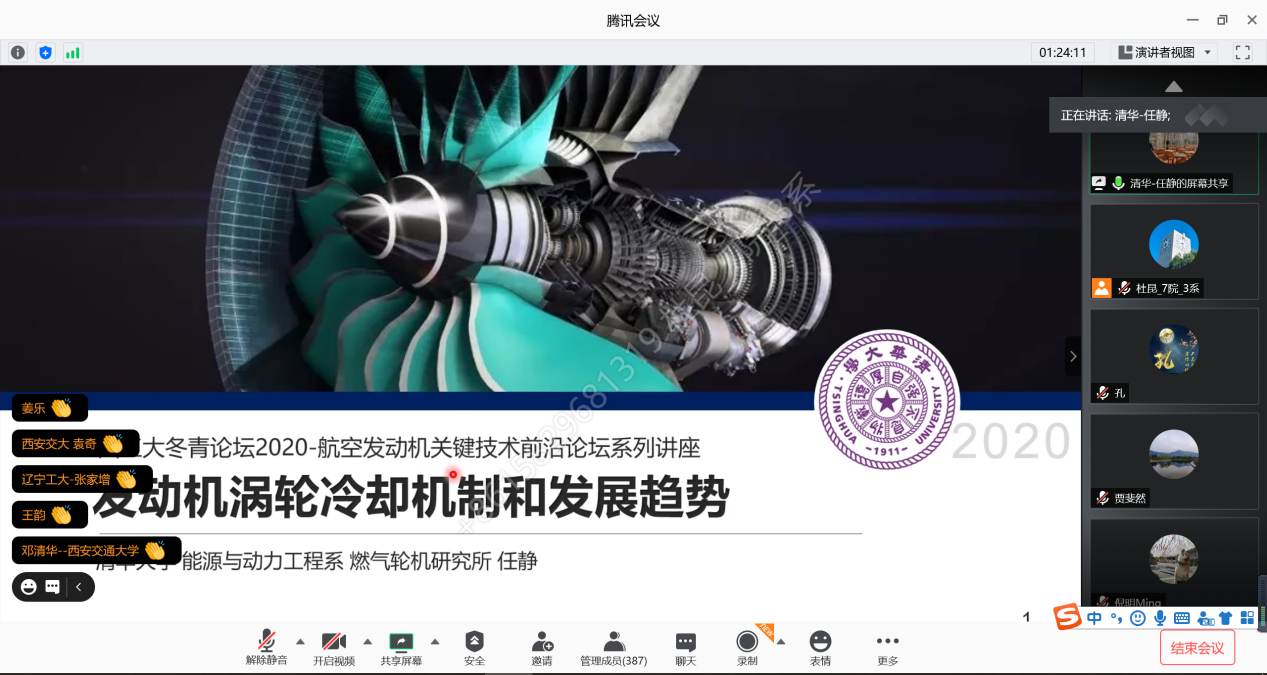 应冬青学会邀请,北京航空航天大学能源与动力工程学院邹正平教授和清华大学能源与动力工程系任静教授分别针对航空发动机涡轮气动和传热研究中的热点和难点问题,对《航空发动机涡轮气动设计领域中的若干问题》和《发动机涡轮冷却机制和发展趋势》进行了精彩讲授。