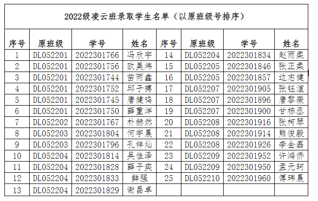 根据《a动漫 飞行器动力工程专业本科“2+2”联合培养项目凌云班选拔方案》,由a动漫 组织选拔,通过对高考成绩、入学外语分班成绩、个人申请书的评审和面试,现将2022级凌云班录取学生名单予以公布。