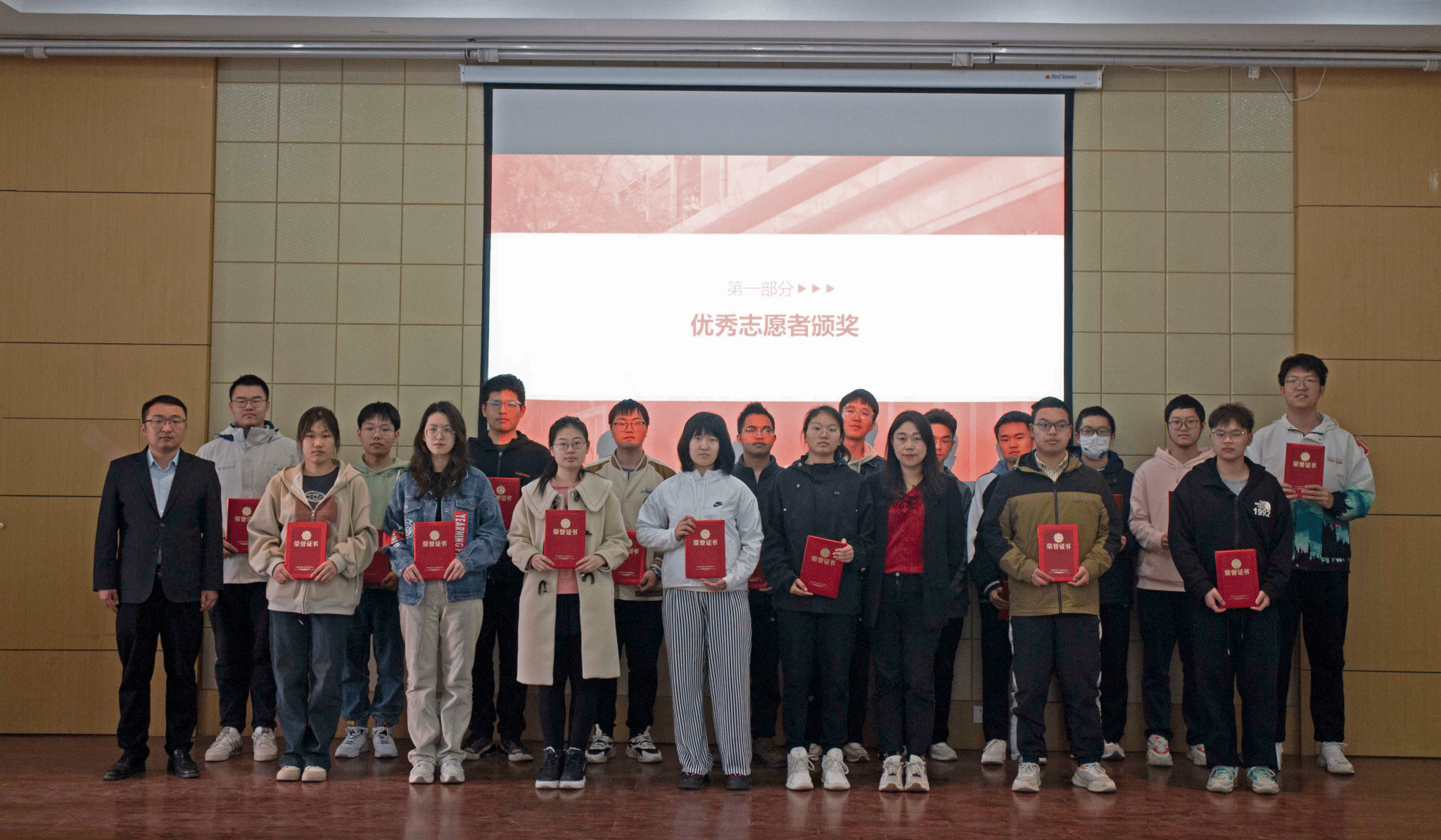 团委、学生会、研究生会优秀工作人员及志愿者颁发证书并合影留念。