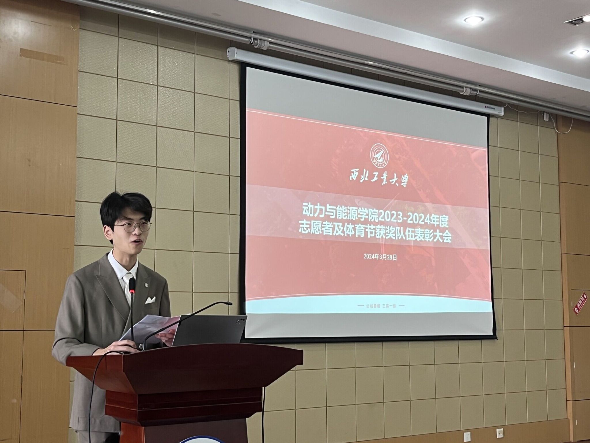 团委、学生会、研究生会成员,动能体育节获奖队伍及个人参会,大会由学生会成员冯子骁主持。
