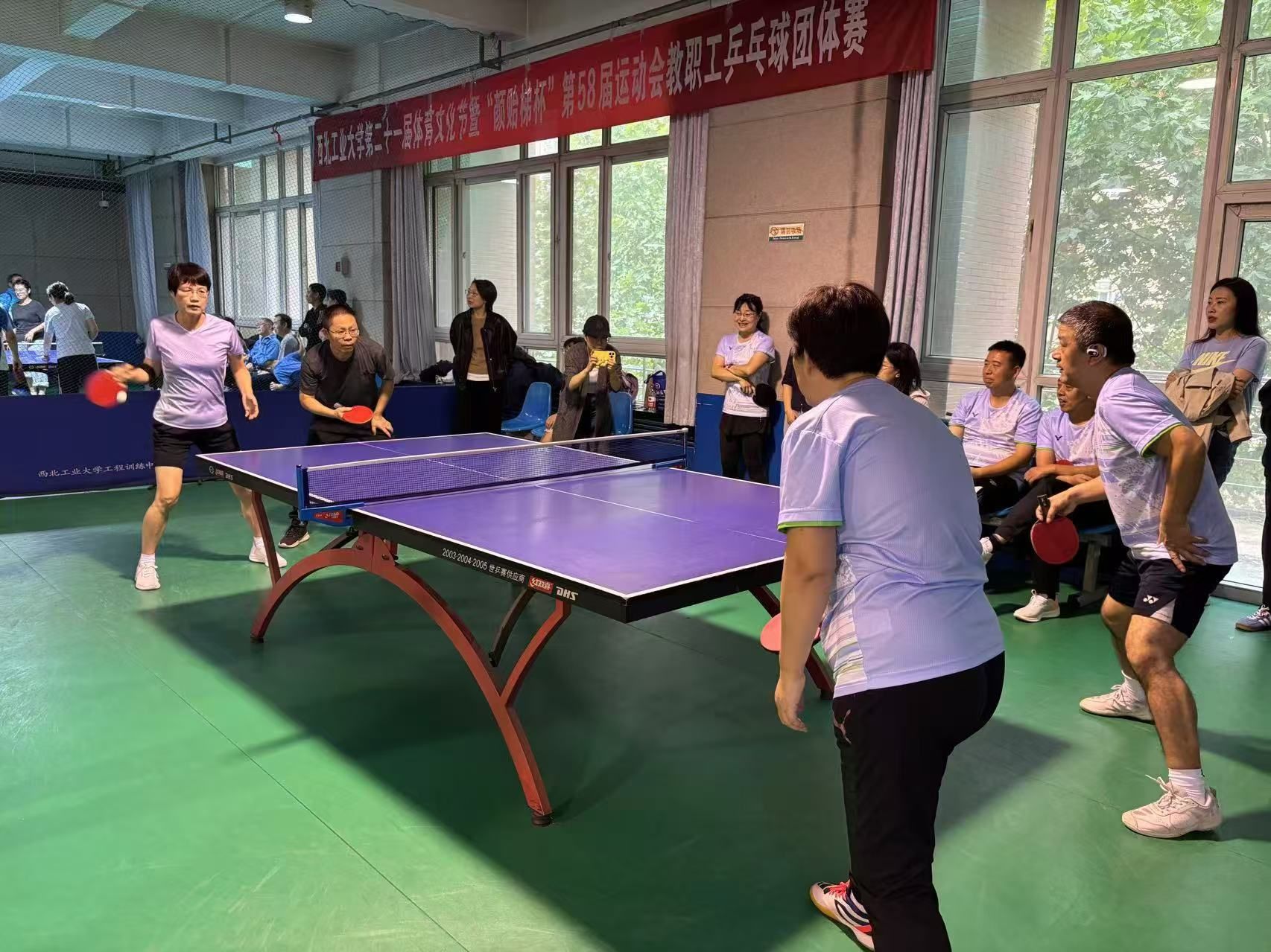 第二十一届体育文化节暨“颜贻梯杯”第58届运动会教职工乒乓球团体赛决赛在友谊校区翱翔训练馆和健翔楼五楼乒乓球室圆满落下帷幕,冯青、朱惠人、王治武、王掩刚、杜昆、张丽、陈燕老师代表a动漫