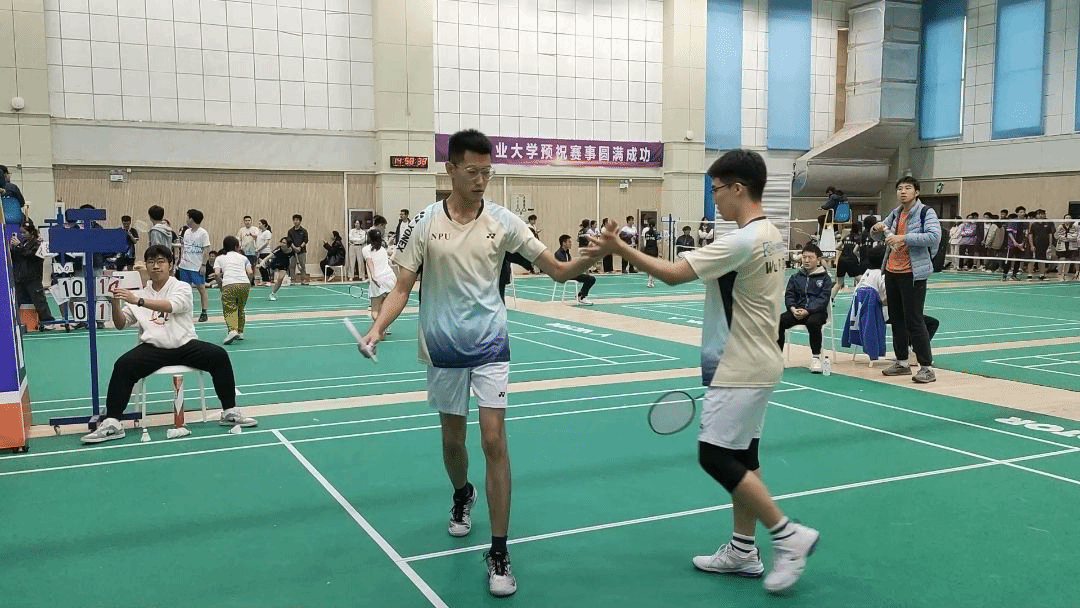 在羽毛球比赛中,动能学院羽毛球队的队员们全神贯注,以矫健的攻防和有力的杀球展现了动能学院学子的风姿。