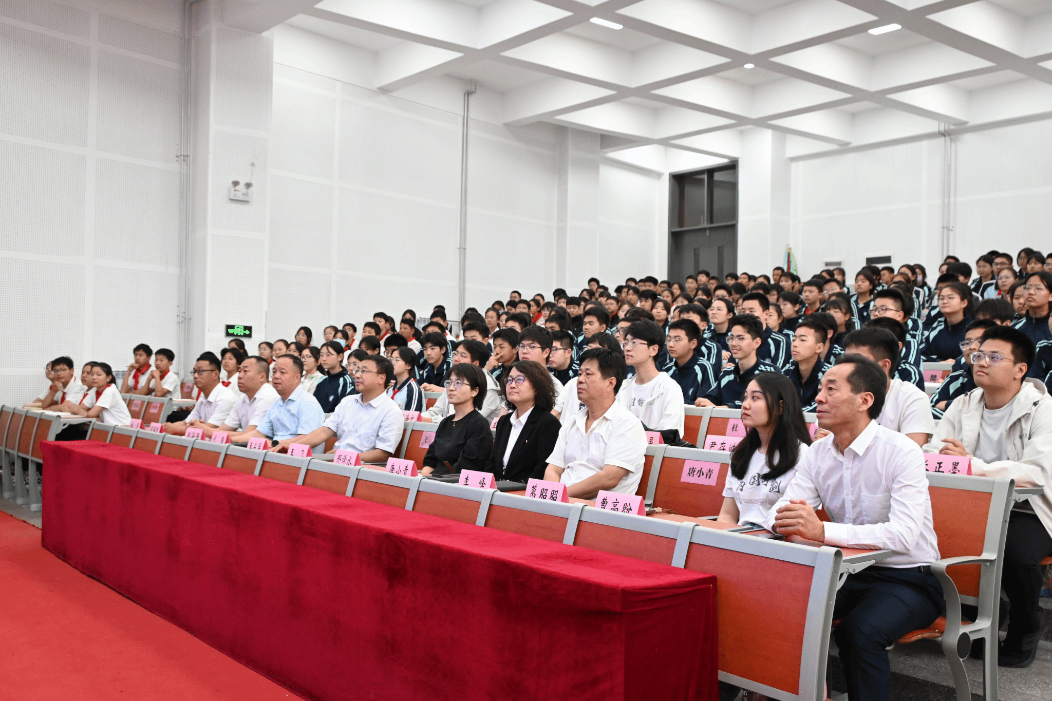 党委书记王占学,高陵区第四中学教育集团总校长王飞、书记代强,学院学工主管邢译水,高陵第四中学教育集团特聘科技副校长曹高盼(2023级博士生),学院铸剑班及学生党员代表,高陵区第四中学教育集团各年级部分师生代表共同参与此次活动