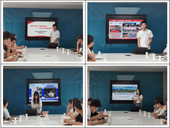研究生第九党支部书记史经垠、航天学院空天动力技术研究所研究生第三党支部书记刘媛、机电学院研究生第三党支部书记汪文静、机电学院研究生第五党支部书记张越强系统介绍了各自支部在党建引领、学科建设、科研攻关等方面的特色成果。尽管各支部所属学院不同,但其科研方向却有着诸多交集与共鸣之处,为后续的深入交流奠定了基础。