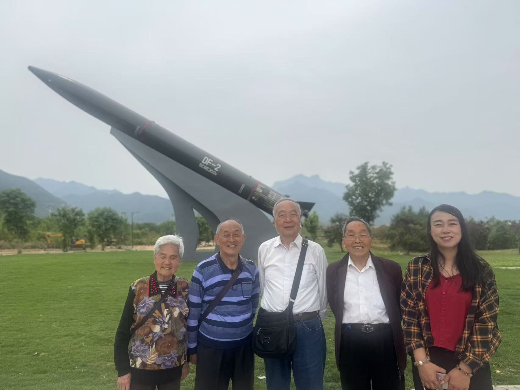 随后,两位校友在陪同下来到了学校的军工素质教育实践中心。在军工素质教育实践中心的户外停机坪上,陈列的多型战机实物见证了学校在相关领域的深耕,施老师重点讲述了学校与国防事业发展同频共振的历程。参观过程中,老校友们不时驻足交流,回忆在校求学时的点滴,感慨校园环境与办学条件的巨大变迁。
