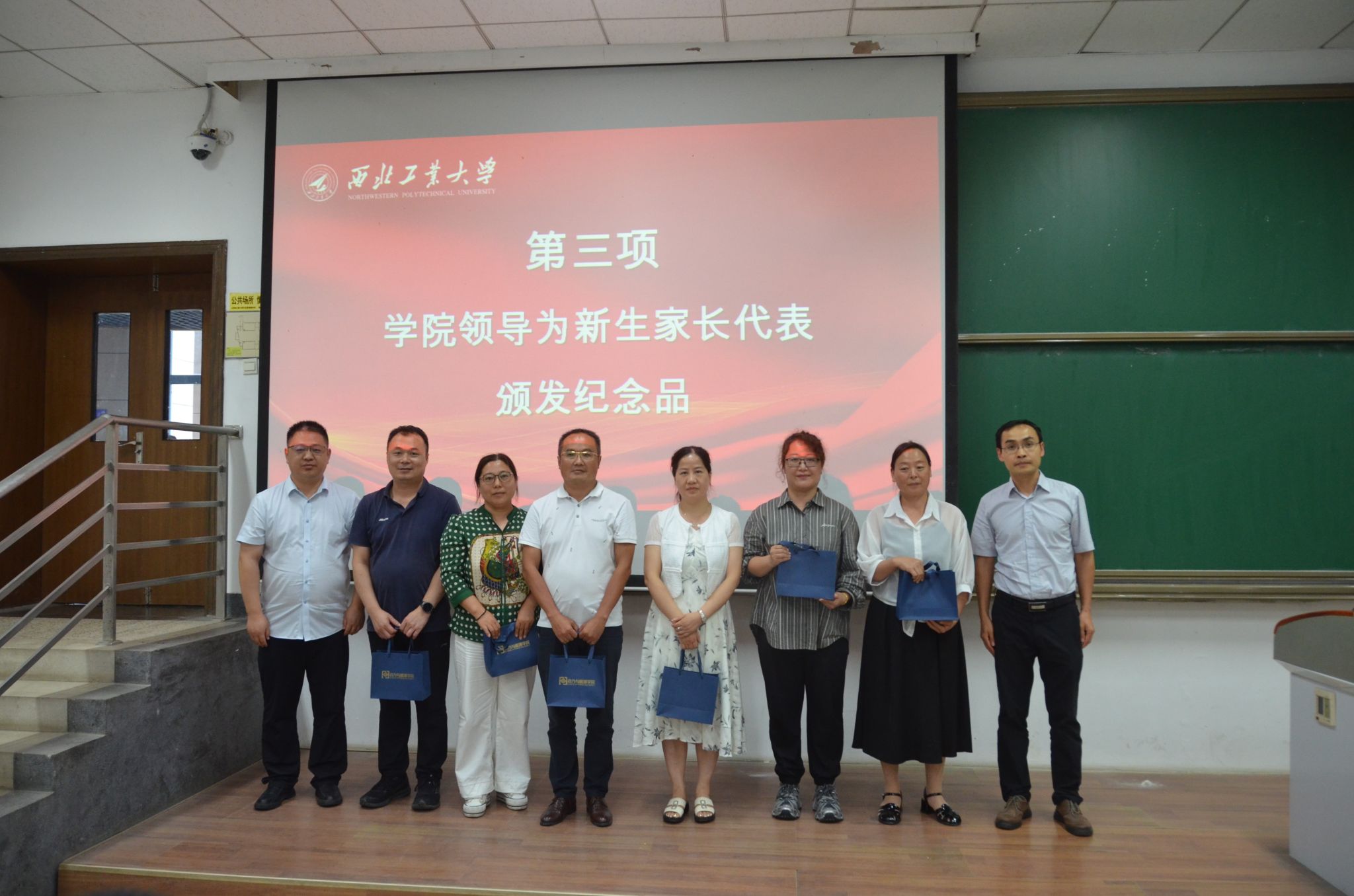 新生代表发言后,学院党委书记李磊、副院长王可对远道而来新生家长代表赠送了纪念礼物,并在会后为所有家长赠送了礼物。感谢他们过去对孩子的辛勤培育,在接下来的日子里,学院会用心培养每个孩子,既为他们插上逐梦的翅膀,也为他们筑牢成长的铠甲。