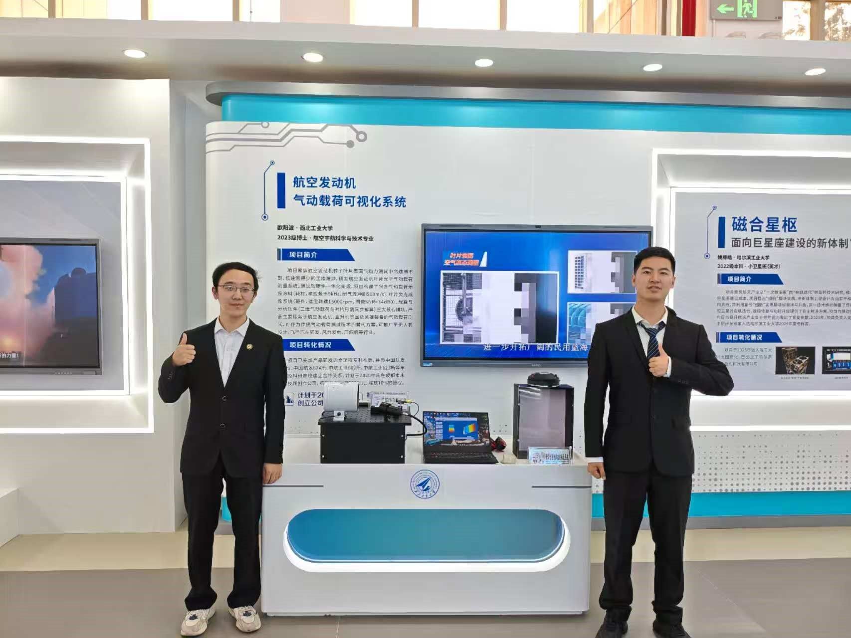 至此,在学校统一部署下,学院参赛团队稳步实现从校赛到省赛、再到国赛的梯度提升,最终在全国赛场实现历史性突破、收获多项殊荣。全国总决赛期间,学院高校主赛道的重点项目《逆压行者——航空发动机气动载荷可视化系统》被学校遴选为优秀项目代表,参加学校专题展陈与集中展示,实现专业实力、育人成果与社会影响的多维呈现。