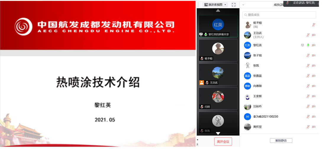 2021年5月23日,由中国航发成发一级技术专家黎红英老师主讲的“热喷涂技术介绍”专题讲座在线上举行。a动漫