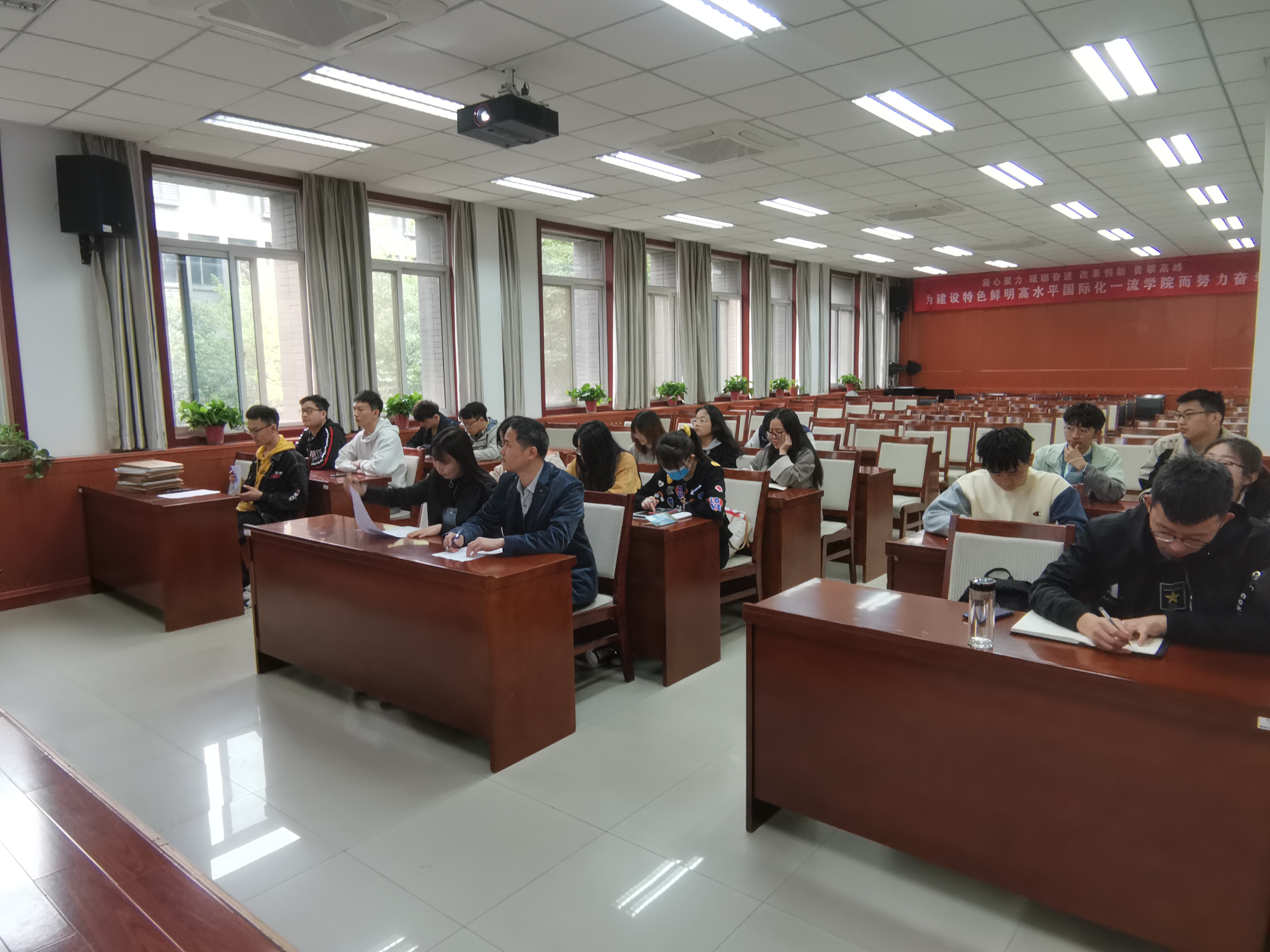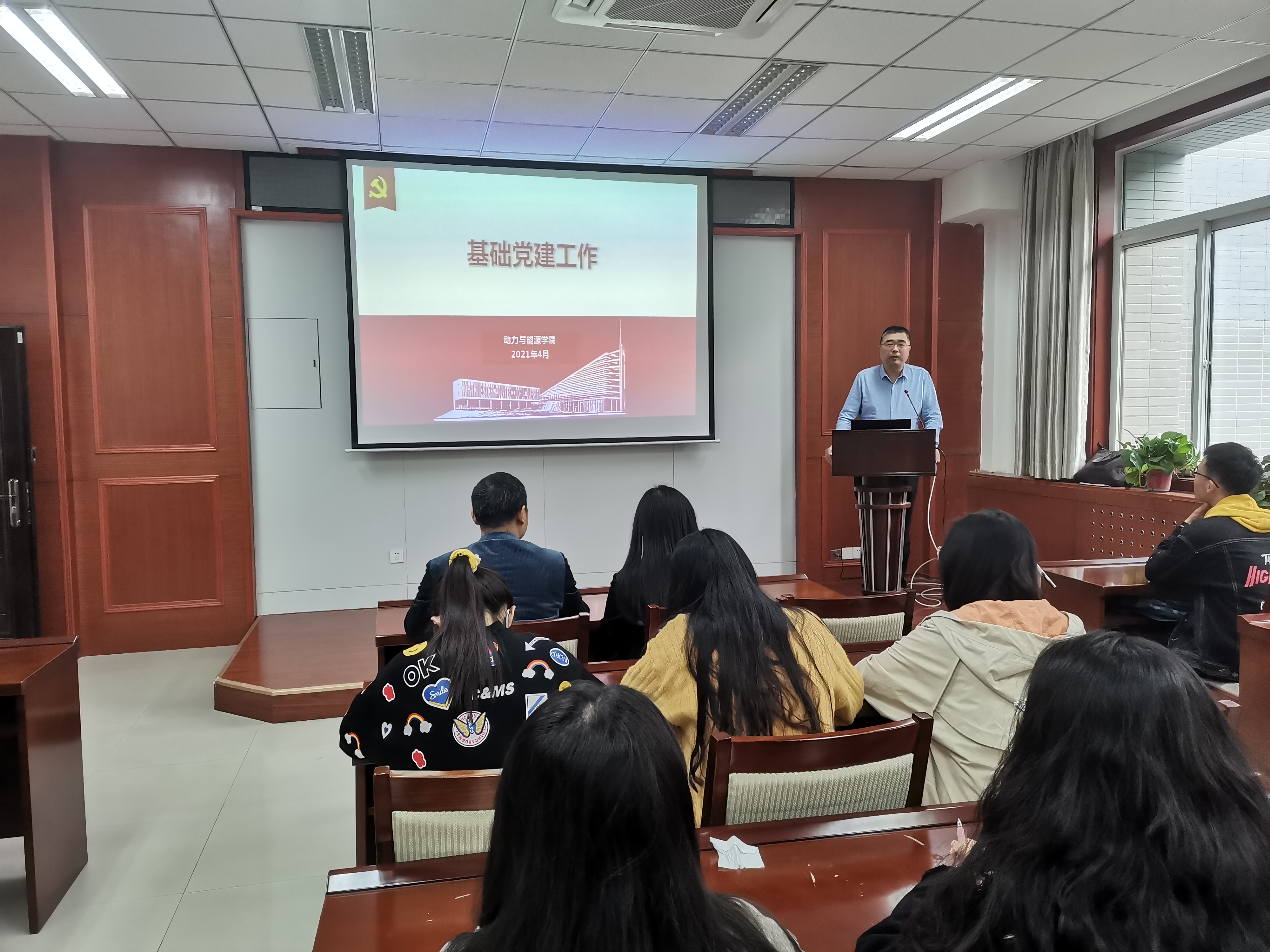 党委书记闫育周在学院楼211B以“基础党建”为主题,为全体师生党支部书记讲授专题党课。23位支部书记参加了本次会议。