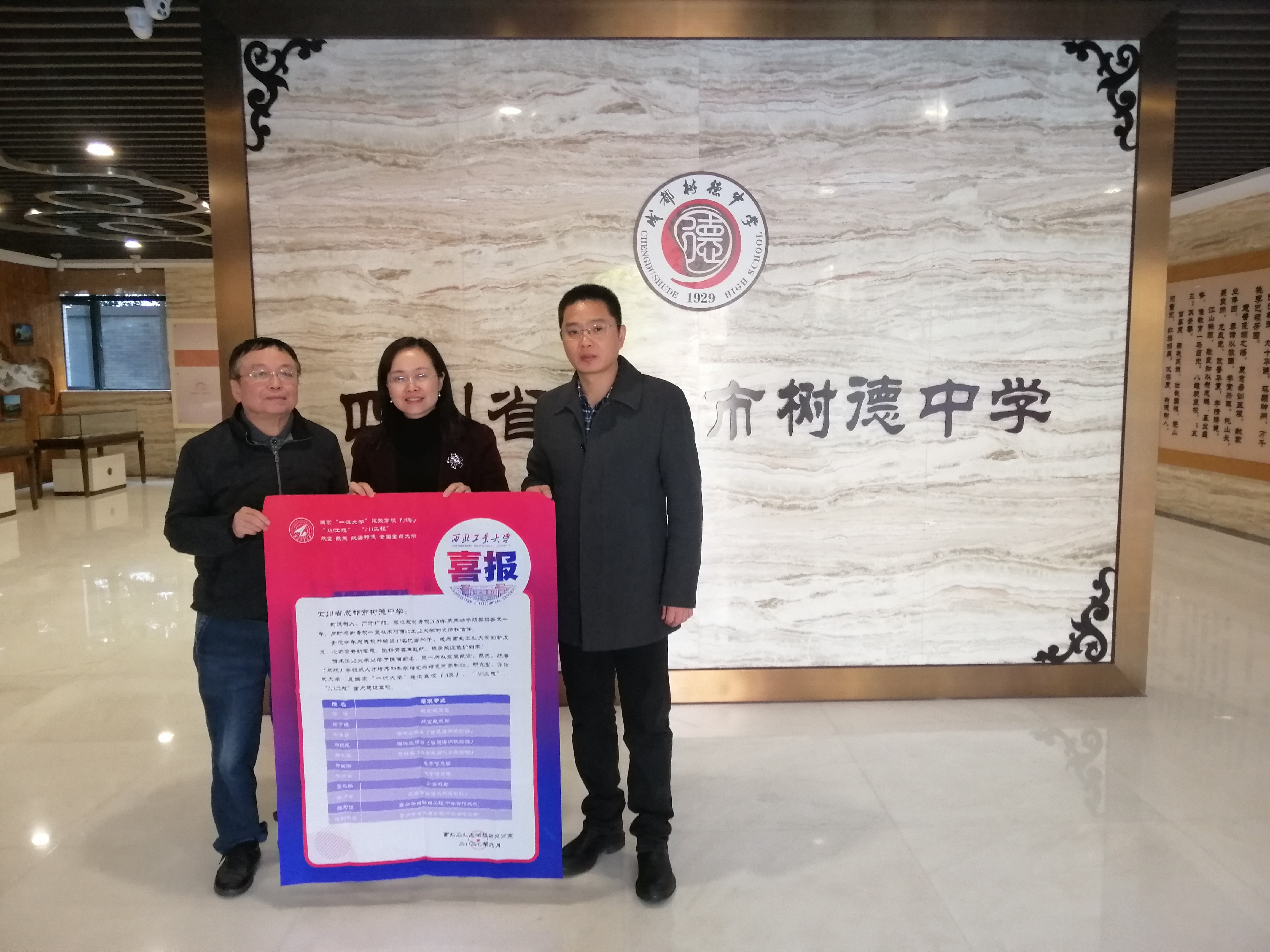 下午3点,刘波教授等一行3人来到成都树德中学与中学领导进行了交流并开展了科普讲座。双方就今年的招生宣讲工作进行了沟通交流,期间刘江副书记为树德中学送上了高考喜报,感谢树德中学长期稳定地为我校输送优秀生源。