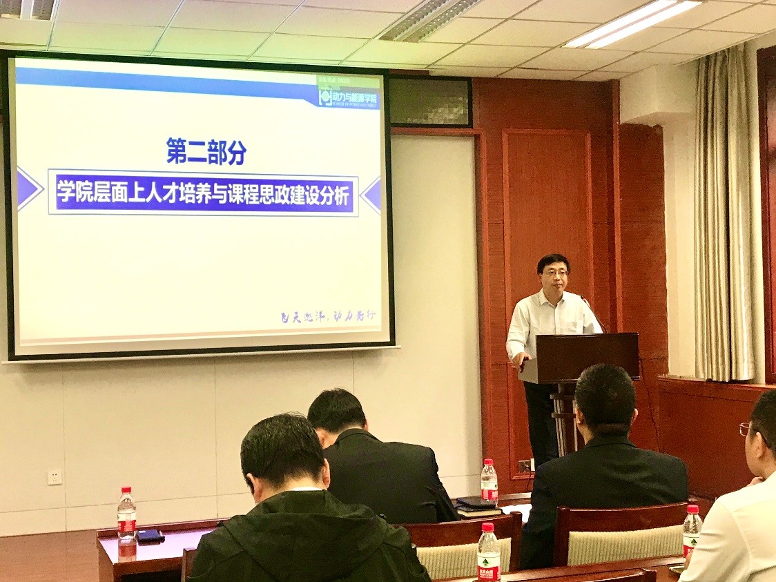 首先,王占学做了题为《以课程思政为抓手,强化三全育人意识,构建动能特色的“三位一体”的育人体系》的报告,从“课程思政与人才培养间的内在联系、学院人才培养与课程思政建设分析和落实学校思政课程与课程思政协同育人工作的具体举措”三个方面解读了学院人才培养模式和课程思政协同育人的举措。他强调,学院将全力开展150+X的专业培养方案模式,用150学分内的学习初步夯实专业基础,使学生具备从事行业工作的基础专业知识和基本工作能力,把班主任和本科生导师制作为这一部分工作的主要抓手,加大班主任和本科生导师的考核力度;用X所代表的“塑魂”、“强基”、“益智”、“健体”、“拓维”为主线,强化人才培养工作中的价值塑造和能力培养,全面提升学院人才培养综合能力,提高人才培养质量。