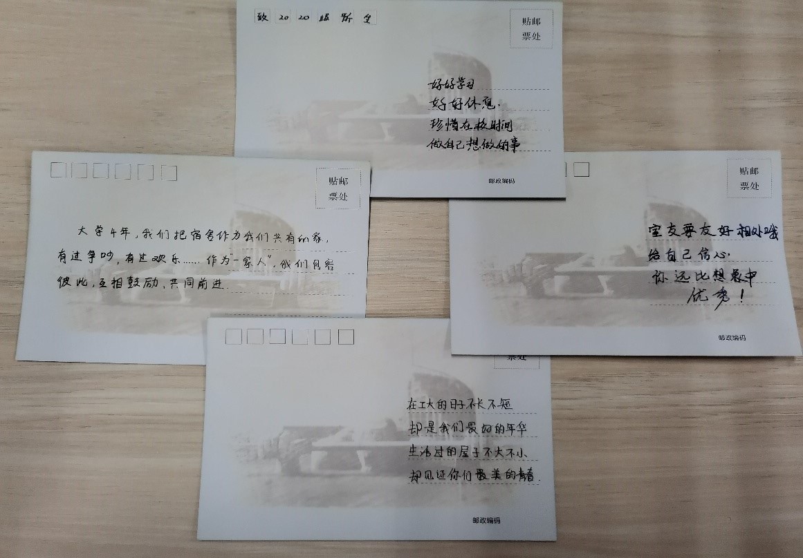 主办的“传室铭”等毕业季活动圆满结束。活动过程中众多宿舍积极配合,进行宿舍打扫,合影留念、锦囊传承等活动,完成了毕业生教育的最后一堂“德育”实践课。一封封饱含深情的寄语,充盈在毕业生心中的是浓浓的离别之念和祝福之情。