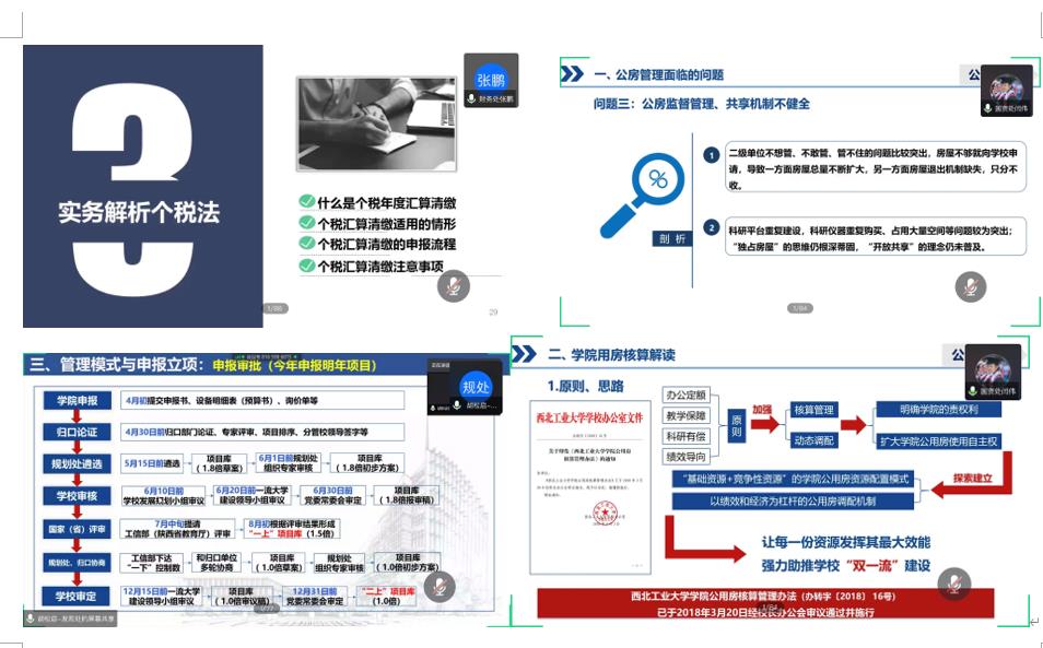 随后,党委教师工作部、科学技术研究院、招标与设备采购中心、研究生院、国际合作处、财务处、发展规划处、纪委办公室等单位负责同志先后围绕师德师风建设、科研业务办理、招标采购、财务报销、固定资产管理和公房核算、“双一流”专项资金申报及管理、研究生教育、教职工因公出国(境)政策、案例警示教育等与各位教职工密切相关的9个主题进行了宣讲和解读。宣讲内容“接地气”、“对胃口”,都是教职工关注度高的热点、难点、疑点问题,大家纷纷表示非常受益。