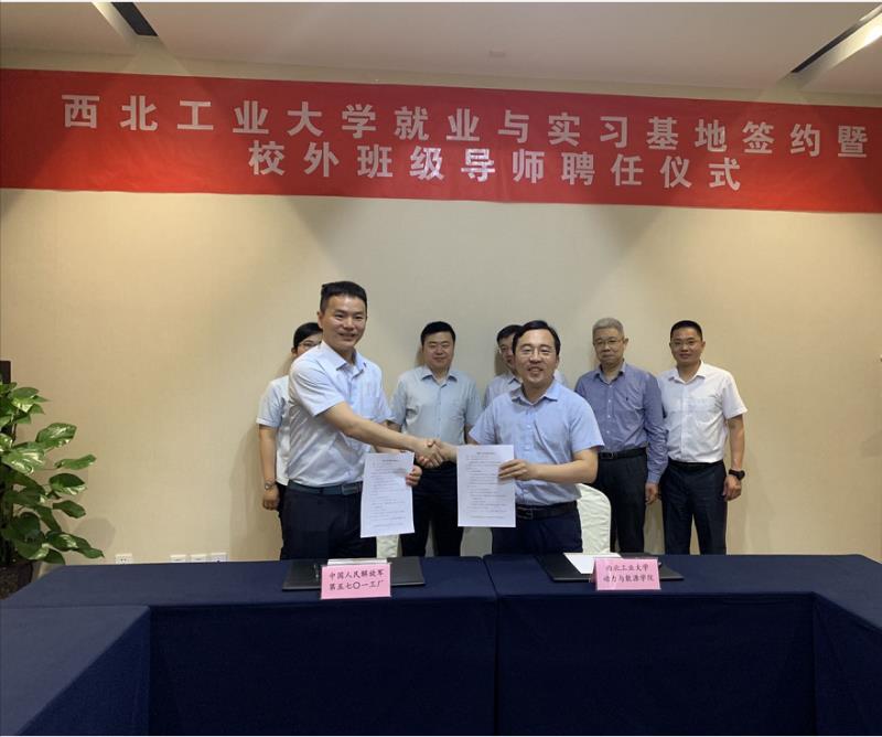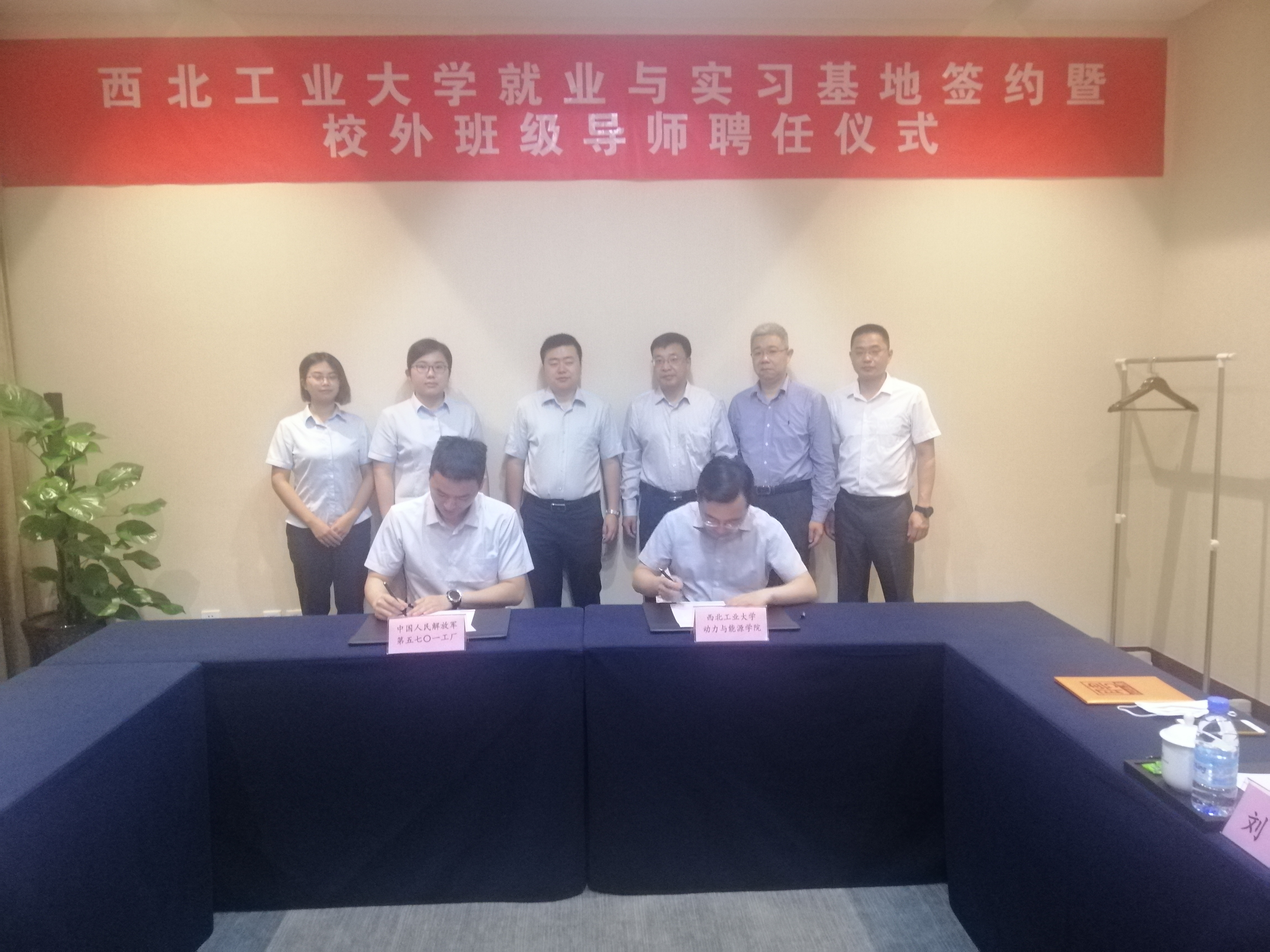 院长王占学、副院长刘存良、副书记刘江、教师代表王俨剀、第五七〇一工厂副厂长兼总工程师卓伟伟校友、党群党支部书记兼党建人力部副主任董宝君等参加了签约仪式。会议由刘江主持。
