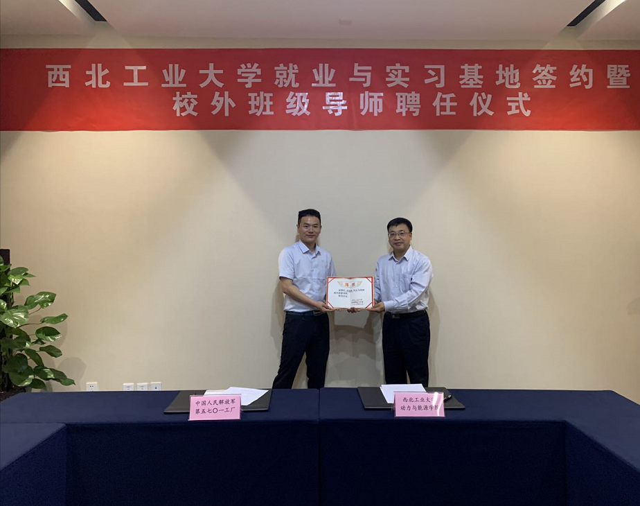 会上,刘存良副院长代表学院与五七〇一厂签订了就业与实习基地协议,王占学院长代表学院为就业与实习基地授牌,并为卓伟伟校友颁发了校外班级导师聘书。