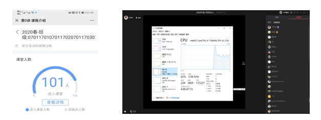为预防直播中的各种突发情况,在开课前一周,王老师提前与部分学生提前取得联系,一同进行了4次试课,以期最大限度地模拟网络教学环境,尽早暴露潜在风险。尝试了“雨课堂+QQ”、“雨课堂+微信”、“微信+QQ”的多种组合方式。经学生投票选择,最终确定了“雨课堂签到+QQ课堂直播+微信答疑”的在线授课方式。2月20日晚的全面试课,峰值在线人数破百,播放流畅,给教学团队吃了定心丸。同时,教学团队事先对授课内容进行了录播,并提出了异地冗余备份的教学事故风险防控措施。由助教在教师授课的同时,逐张发布PPT;教师万一掉线,异地的助教发布剩下音视频,学生自学等待教师。此举,即达到了教师掉线的备份作用,也避免了学生因事先下载课件而逃学的情况。