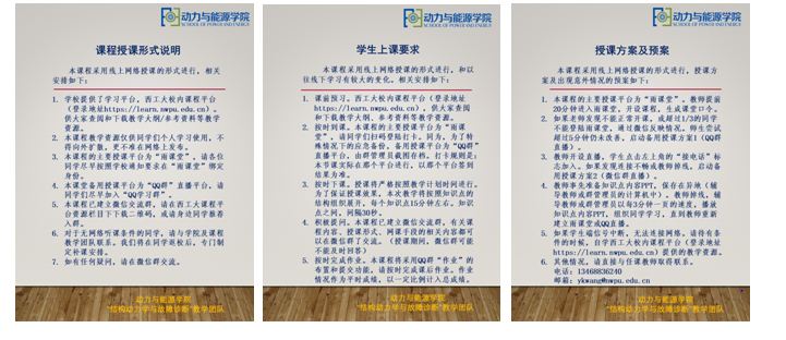 的王俨剀老师就开始了紧张的备课工作。“结构动力学与故障诊断教学团队” 结合自身的教学经验,制定了详细的线上教学方案。提前两周反复修订,推出了一系列的教学规程。明确了课准备怎么上、出现意外怎么办和怎么保证教学质量等教学要点。