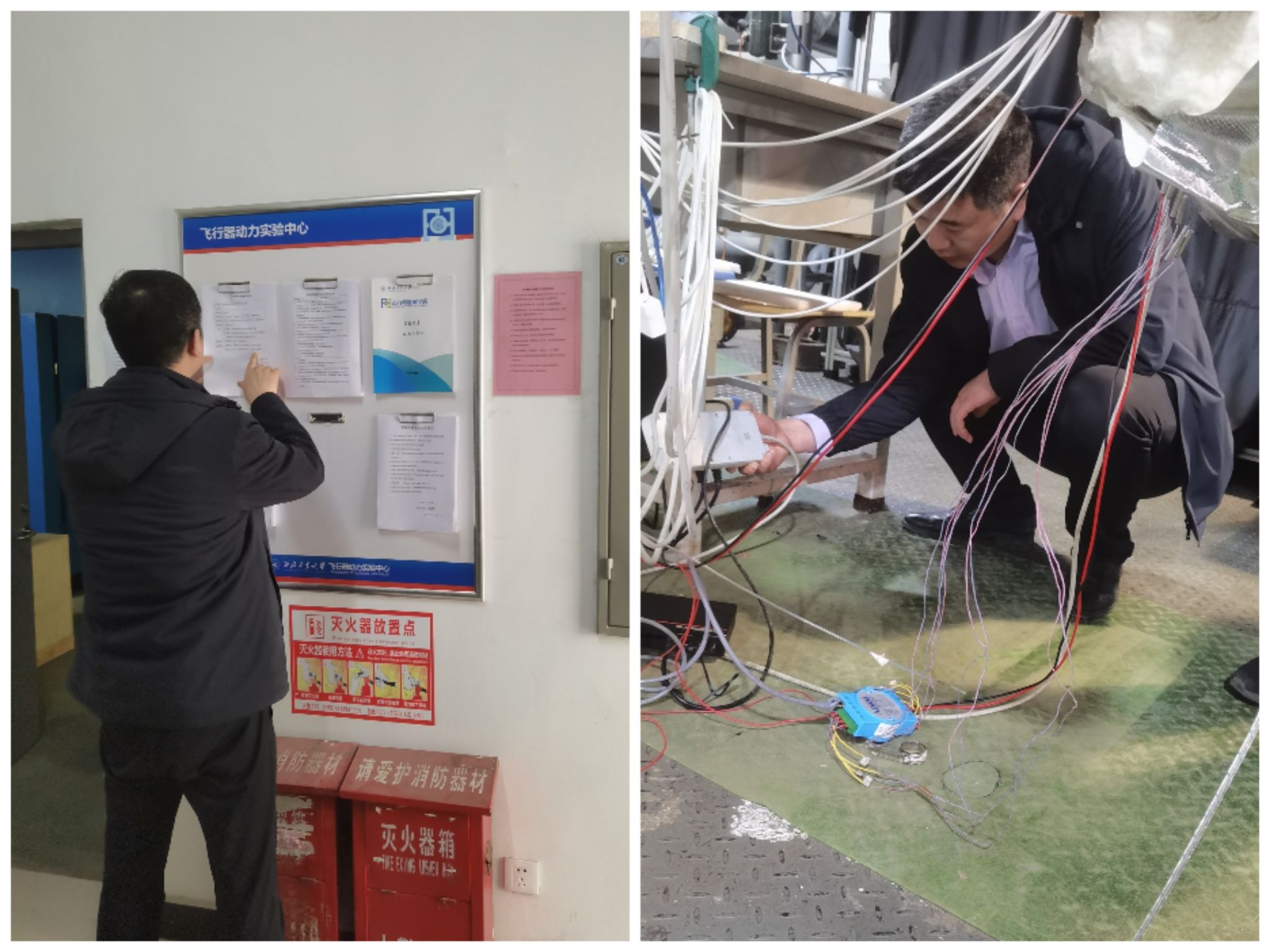 下午,刘涛讲师、学院董明涛老师等到飞行器动力实验中心开展安全隐患排查。在实验室现场查看了安全管理制度、工作环境、防护用品、消防器材、应急逃生通道、特种设备、危化品管理、用电安全等,在排查过程中刘涛老师积极和实验室老师探讨实验室安全隐患排查和实验室管理等问题。