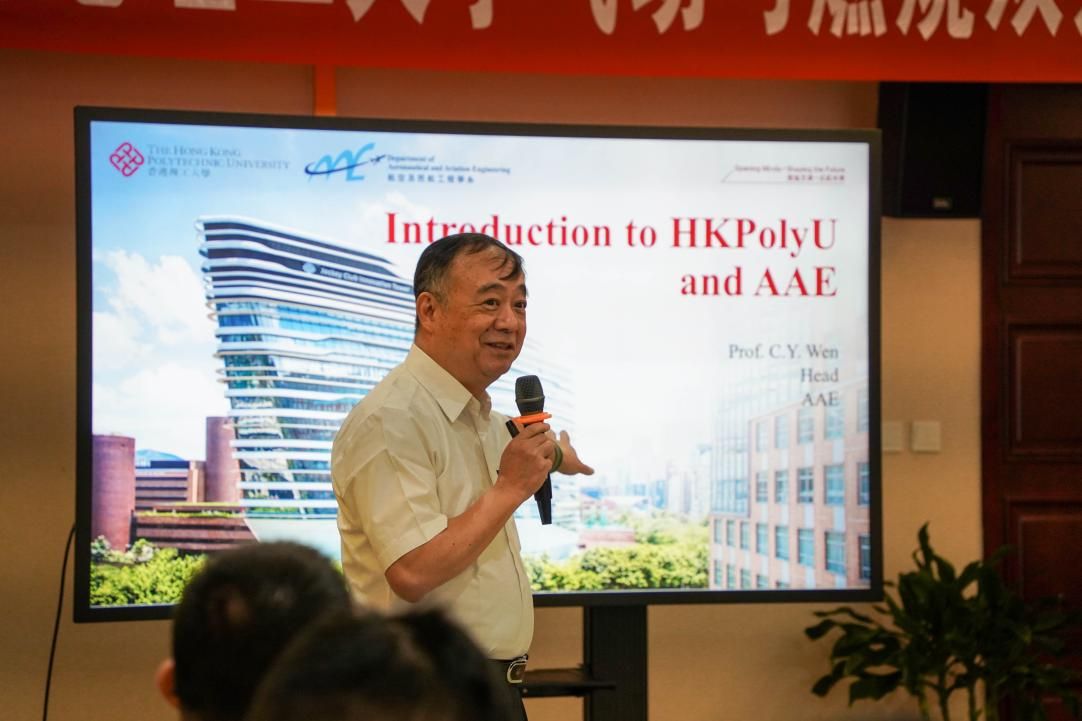香港理工大学航空及民航工程学系系主任温志湧向大家介绍了学校历史、学校排名、科研中心及成果,并向大家详细介绍了香港理工大学航空及民航工程学系概况、历史、教职工与学生人数及科研中心等情况。