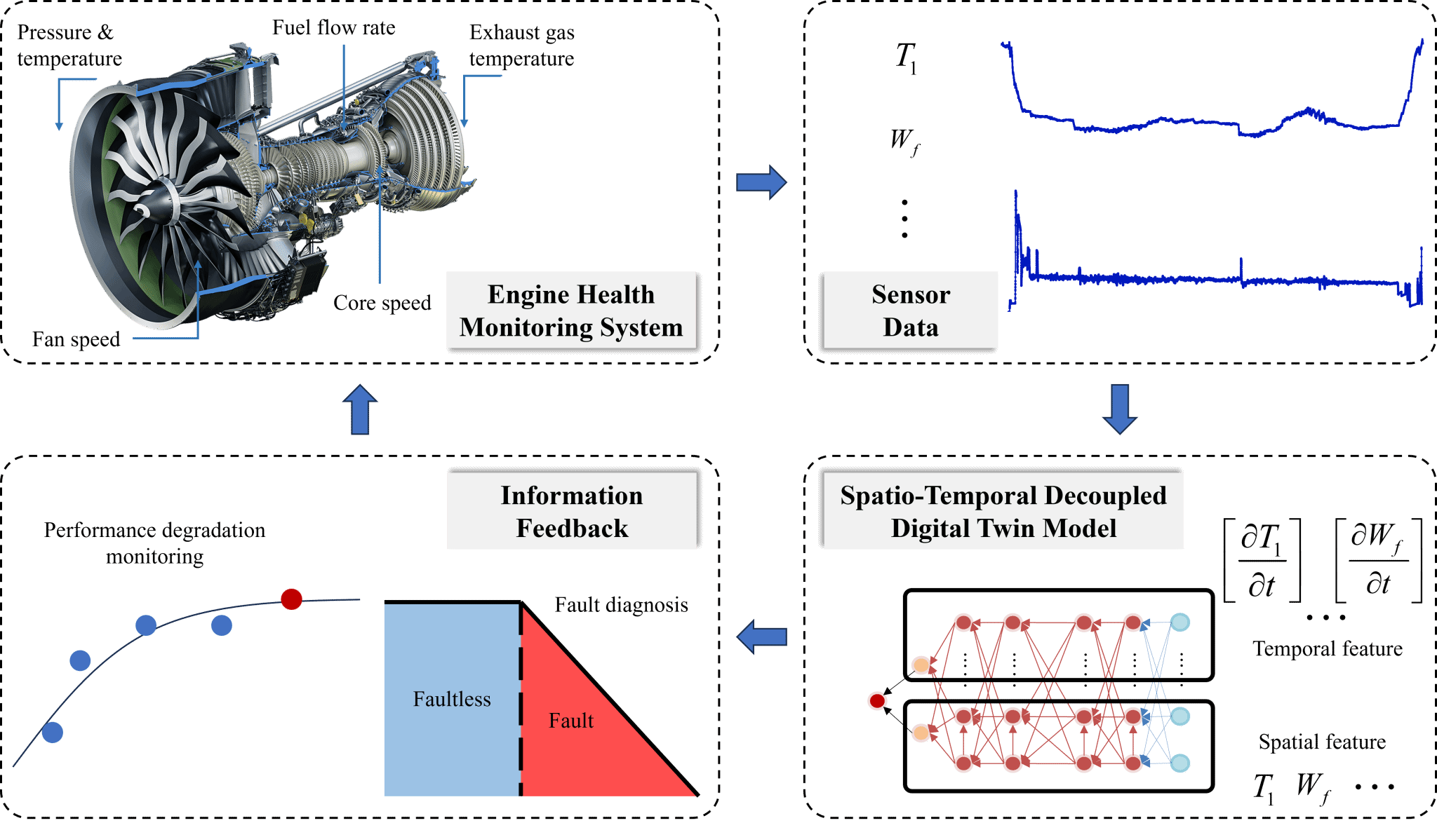 针对时间和空间特征的耦合处理问题,团队在网络架构层面提出了一种时空解耦的人工智能算法,实现对时间特征和空间特征的解耦处理,有效提升了整机数字孪生模型的精度,并且具备在实际应用部署中灵活应对传感器变采样频率场景的能力。