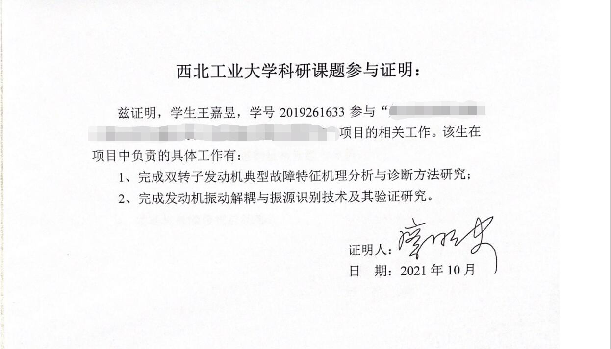 作为一名硕士研究生,通过科研学习提升自己是很有必要的。王嘉昱同学在学习上态度端正,勤奋努力,积极向身边的老师与同学们请教问题。硕士期间学习成绩良好,积极参与科学研究工作,并参与多项国家科技重大专项的研究工作,为祖国某型号航空发动机的研制改进工作付出了时间、精力与汗水。