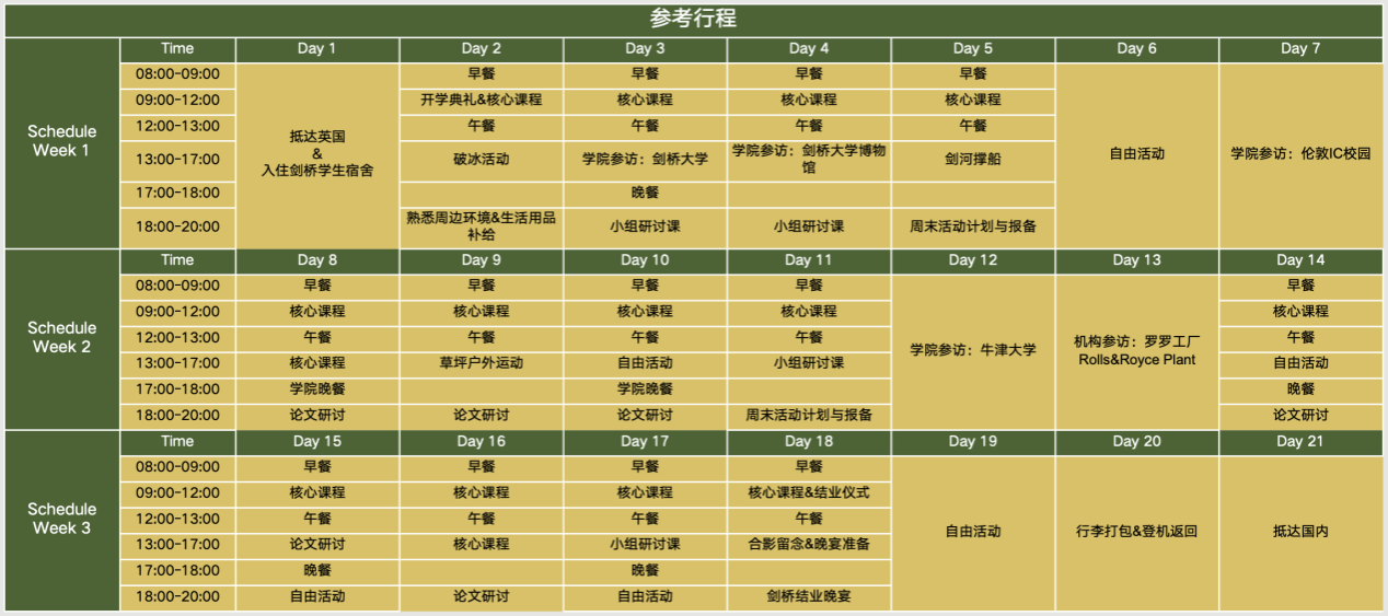 项目为期3周,线下课程共计60课时,学生将注册成为剑桥大学暑期学生,入住300年历史的学院。在课程之外,学生还将探访Rolls & Royce航空发动机研发中心、帝国理工大学、牛津大学等世界顶尖名校。学生在完成项目后,将获得由剑桥大学官方颁发的项目证书和成绩报告,优秀学生还将获得授课教授的推荐信。