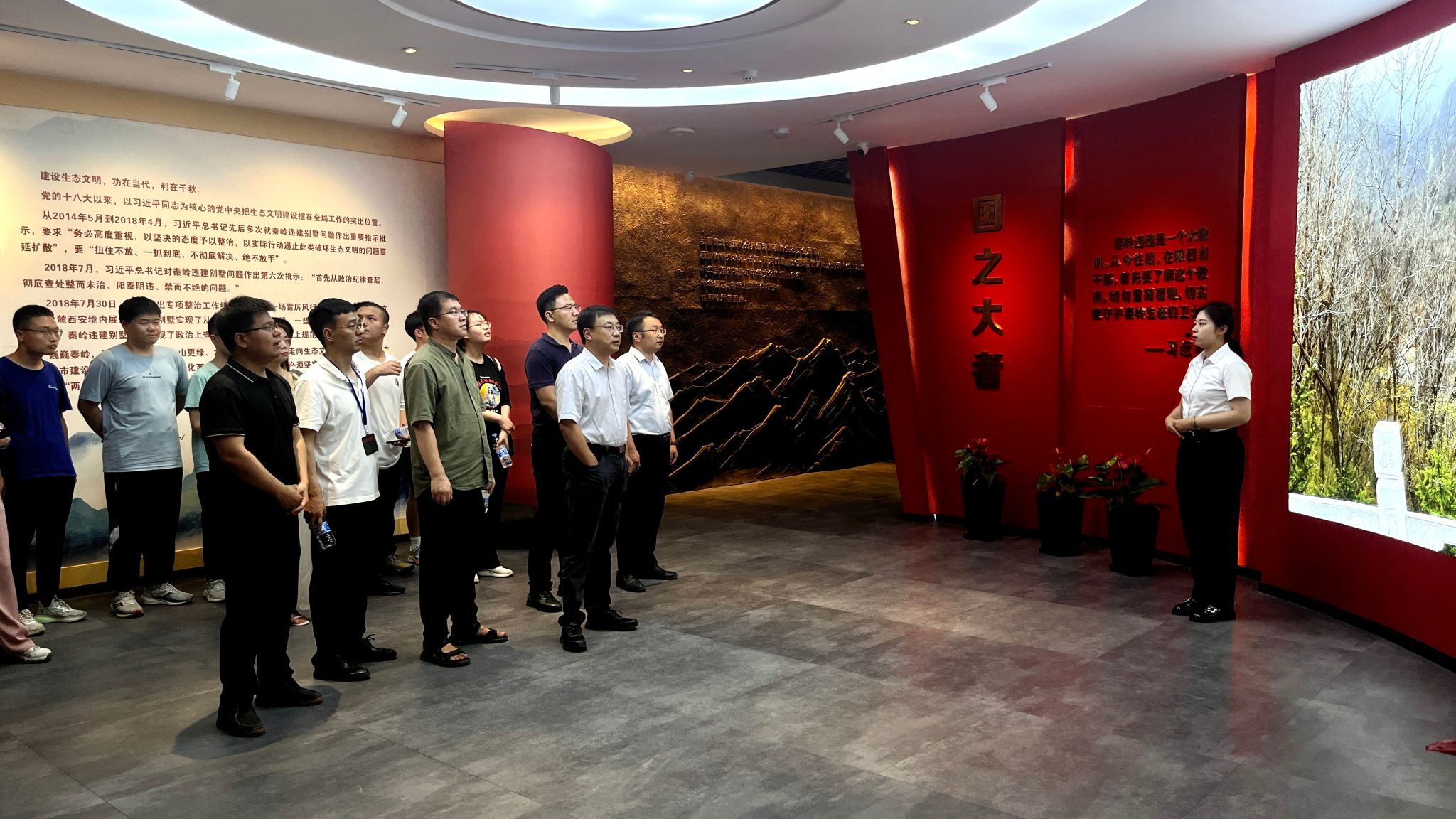 在守护秦岭展厅,学院一行人在党委书记王占学的带领下,面对鲜红党旗,重温入党誓词,感悟初心使命。