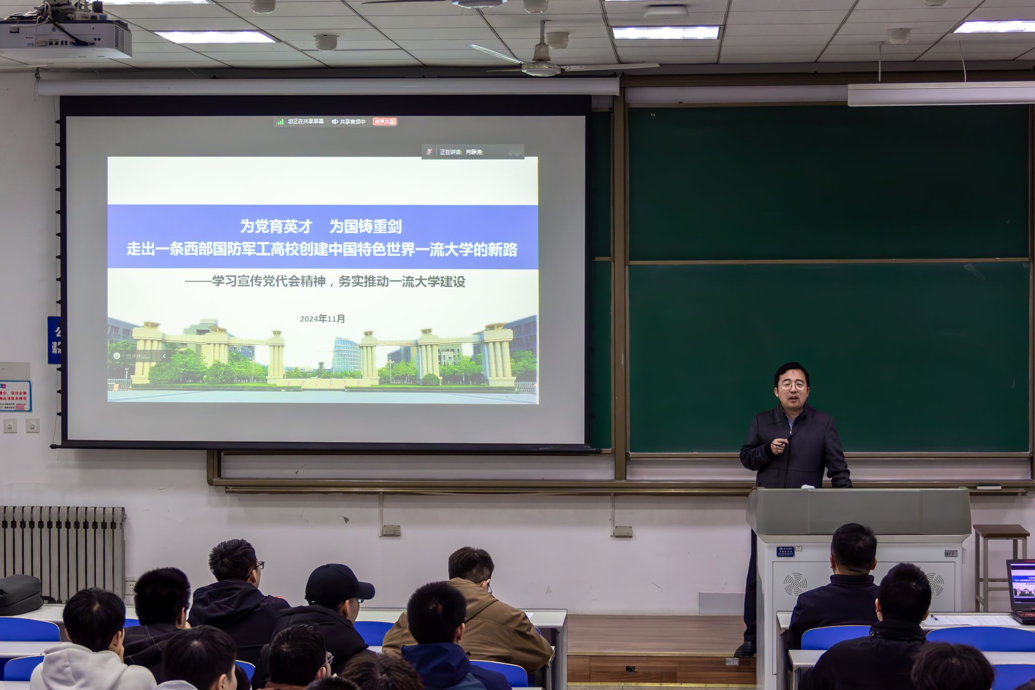 11月17日,刘存良教授为参训学员讲授了题为《为党育英才 为国铸重剑 走出一条西部国防军工高校创建中国特色世界一流大学的新路》的专题党课暨思政课。刘存良院长紧密结合党的二十届三中全会、全国教育大会对高校提出的新要求新任务,重点解读了习近平总书记关于教育、科技、人才的重要论述。刘存良院长强调,大学在科技、人才、创新和高质量发展方面具有重要使命,并结合自己的经历,要求学生们坚定理想信念,为国家的航空发动机事业贡献力量。