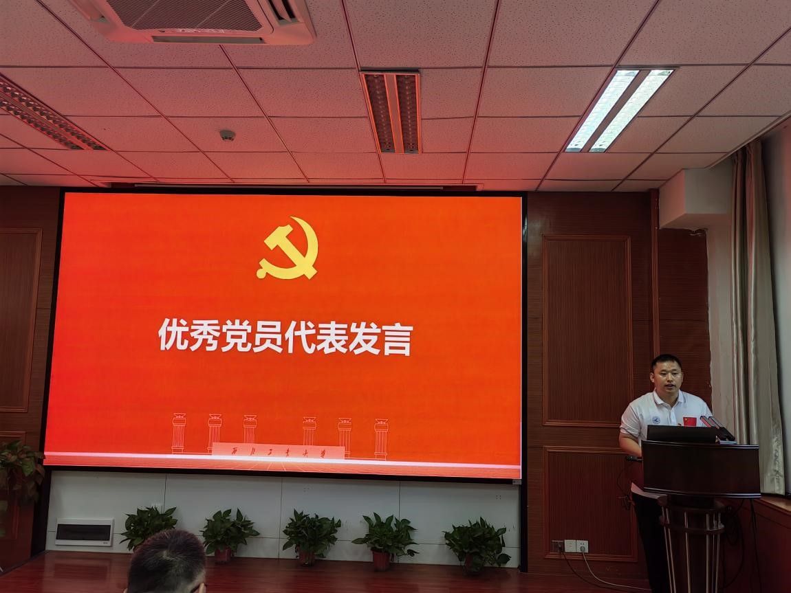 会上,优秀党员代表白晓辉同志作交流发言,他表示,此项荣誉既是对个人工作的肯定,更是一份沉甸甸的责任。深情回顾了自己在党旗下的成长历程,分享了在教书育人和科研工作中的感悟与经验。今后也以此次表彰为新的起点,继续发挥共产党员的先锋模范作用,以更高的标准、更严的要求,努力在本职岗位上再创佳绩,为学院发展贡献更多力量。