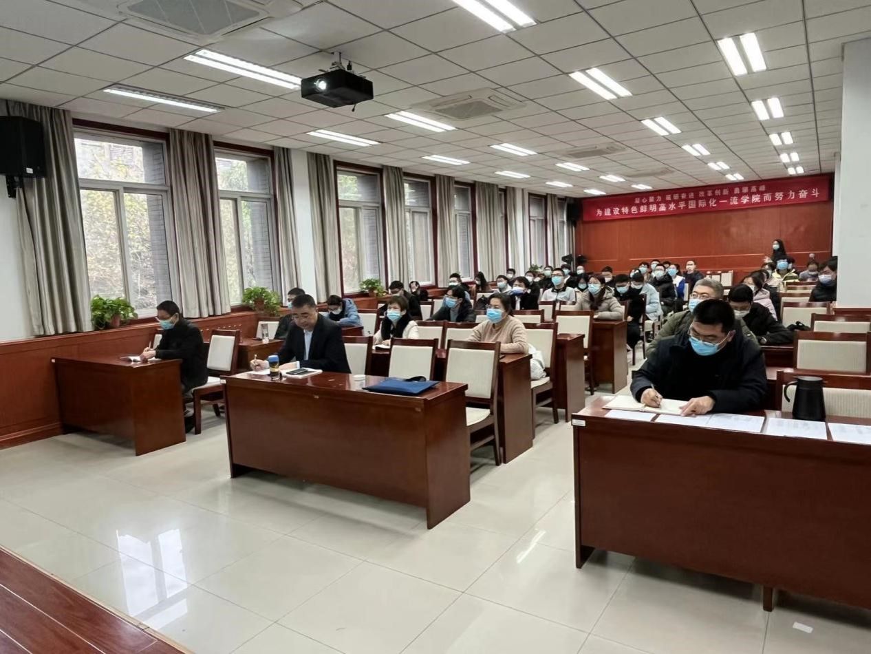 詹浩以“功成不必在我、功成必定有我的责任担当,投身学校教育事业”为主题,从学习贯彻党的二十大精神出发,回顾高校学生思想政治工作的实践历程,细数新时期高校学生思想政治引领工作所面临的挑战,新时期我校加强学生思想政治引领工作的举措以及如何做到立足岗位、踔厉奋发、勇毅前行这五个方面对党的二十大精神如何引领学校教育事业做了全面系统的宣讲。授课过程理论联系实际,给大家讲了一次系统全面、高质量的党课。
