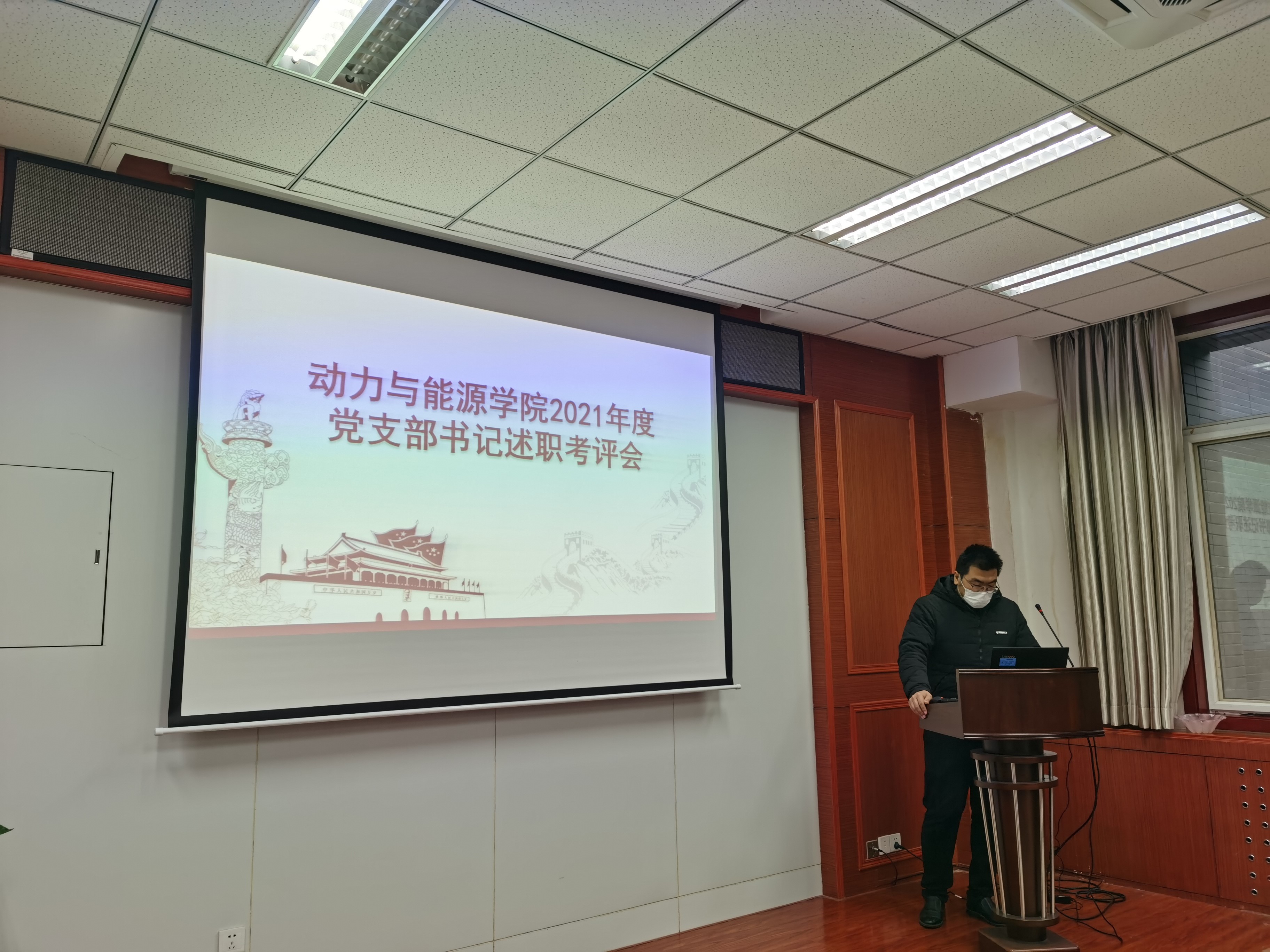 于12月23日上午9点,在学院楼225会议室召开了2021年学生党支部书记述职评议大会,对2021年学生党支部工作开展情况进行检查。学院党委书记闫育周、党委副书记刘海涌、党委成员许卫疆、校团委副书记马婷婷出席了此次会议并担任评委,学院全体学生党支部书记参加本次大会。会议由刘海涌副书记主持。