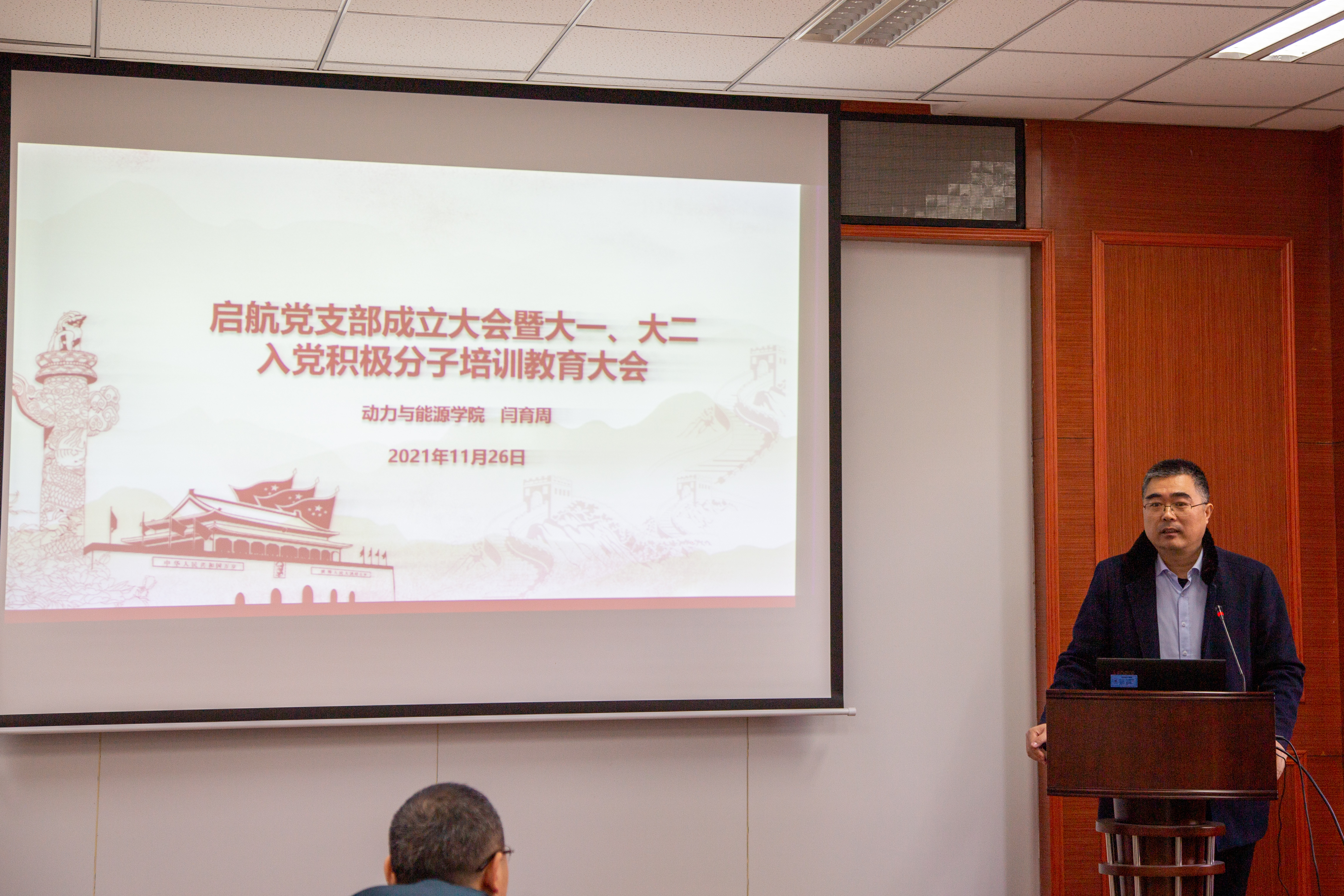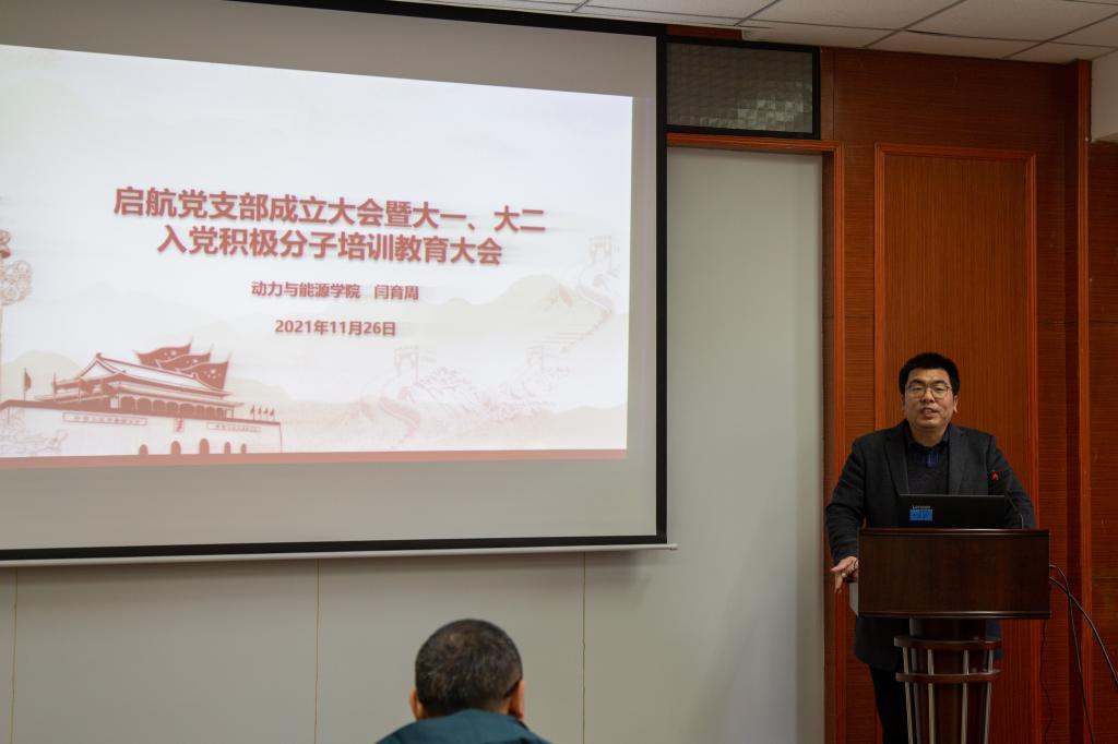 “启航党支部成立大会暨大一、大二入党积极分子培训教育大会”于动能学院楼225会议室召开,本次大会由学院党委副书记刘海涌主持,参会人员有党委书记闫育周、启航党支部的老师以及本院20级、21级入党积极分子。