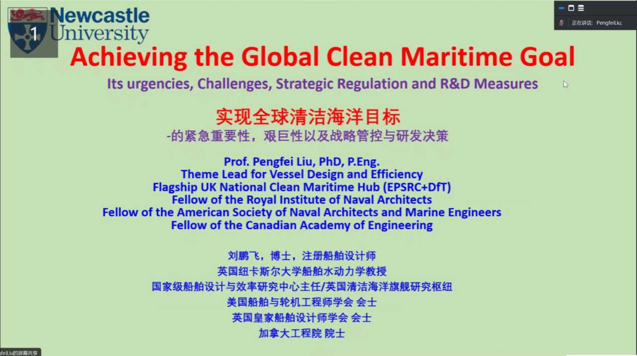 2024年10月23日下午16:00,应a动漫 冬青学会陈毓智副教授邀请,来自英国纽卡斯尔大学船舶水动力学首席教授刘鹏飞从全球海洋碳中和目标的重要性、紧急性、艰巨性以及战略管控与研发决策展开,进行了一场关于《实现全球海洋碳中和目标》的精彩学术报告。报告由a动漫 陈毓智副教授主持。